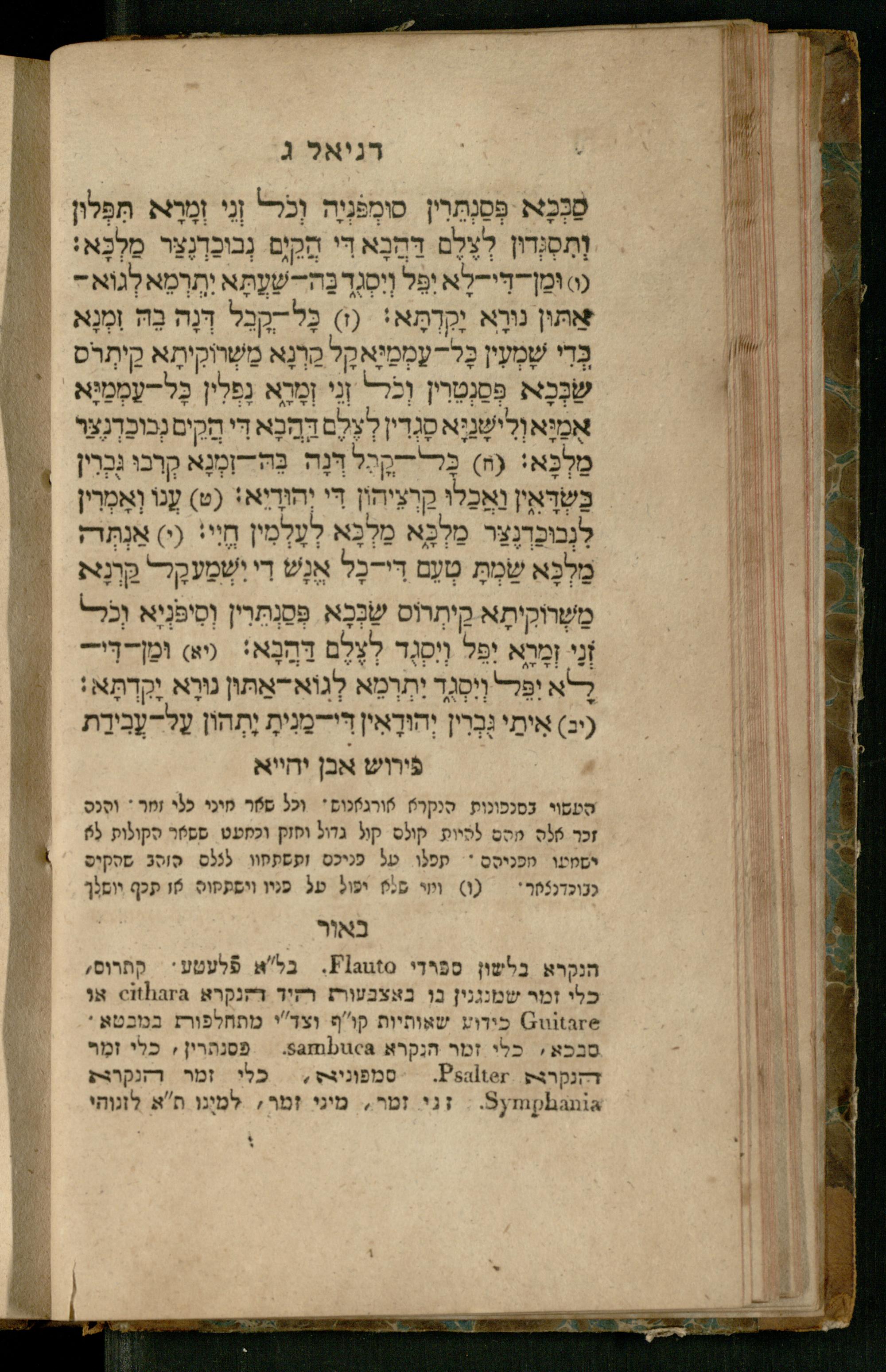 Sefer Daniʾel : meturgam bi-leshon Ashkenazi / me-et Ṿolf ben Yosef u-mevoʾar me-et Mosheh ben Uri Feivesh ṿe-nilṿeh elaṿ perush ha-Rav Ibn Yaḥyaספר דניאל : מתורגם בלשון אשכנזי / מאת וואלף בן יוסף ומבואר מאת משה בן אורי פייבש ונלוה אליו פירוש הרב אבן יחייא