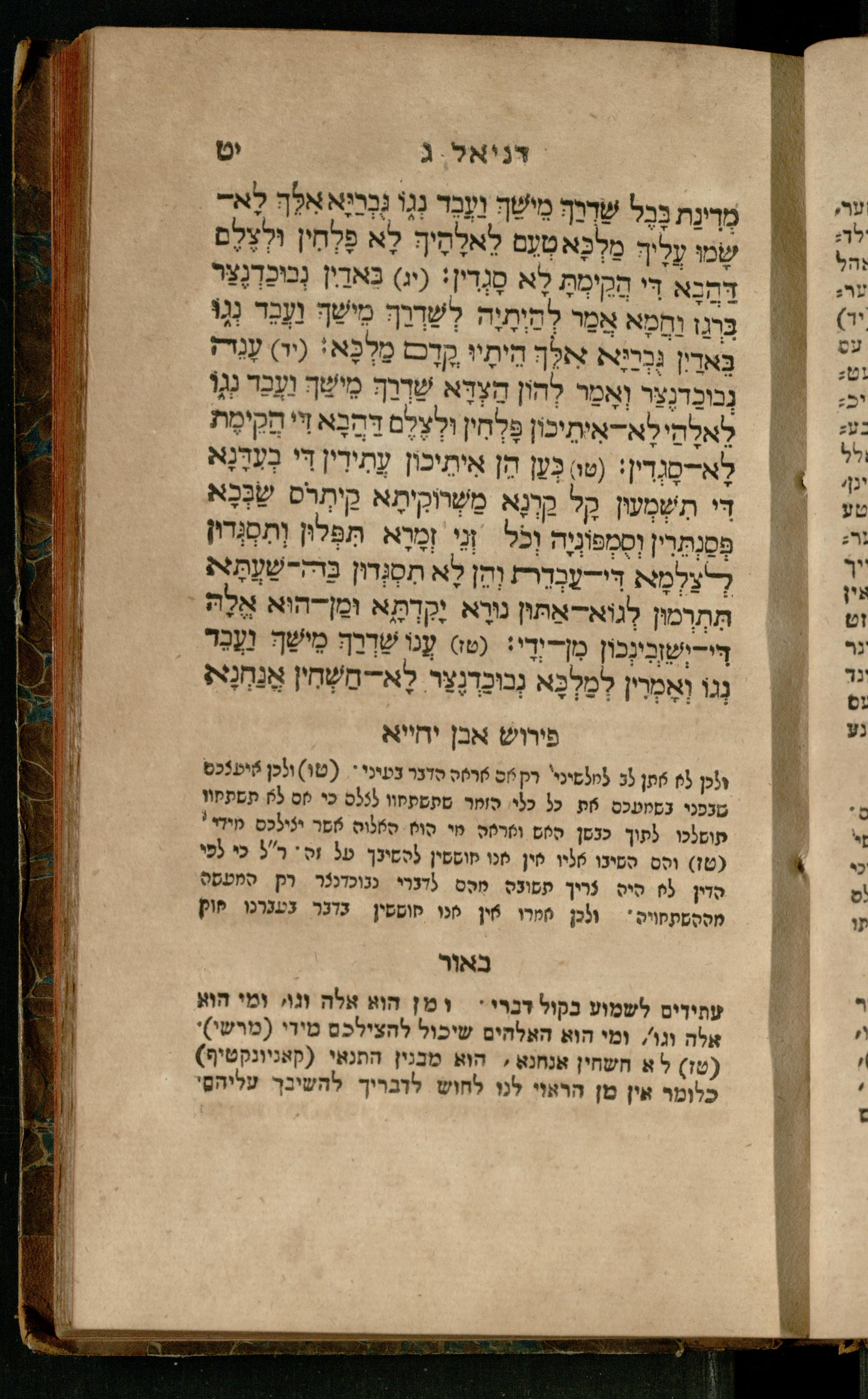 Sefer Daniʾel : meturgam bi-leshon Ashkenazi / me-et Ṿolf ben Yosef u-mevoʾar me-et Mosheh ben Uri Feivesh ṿe-nilṿeh elaṿ perush ha-Rav Ibn Yaḥyaספר דניאל : מתורגם בלשון אשכנזי / מאת וואלף בן יוסף ומבואר מאת משה בן אורי פייבש ונלוה אליו פירוש הרב אבן יחייא