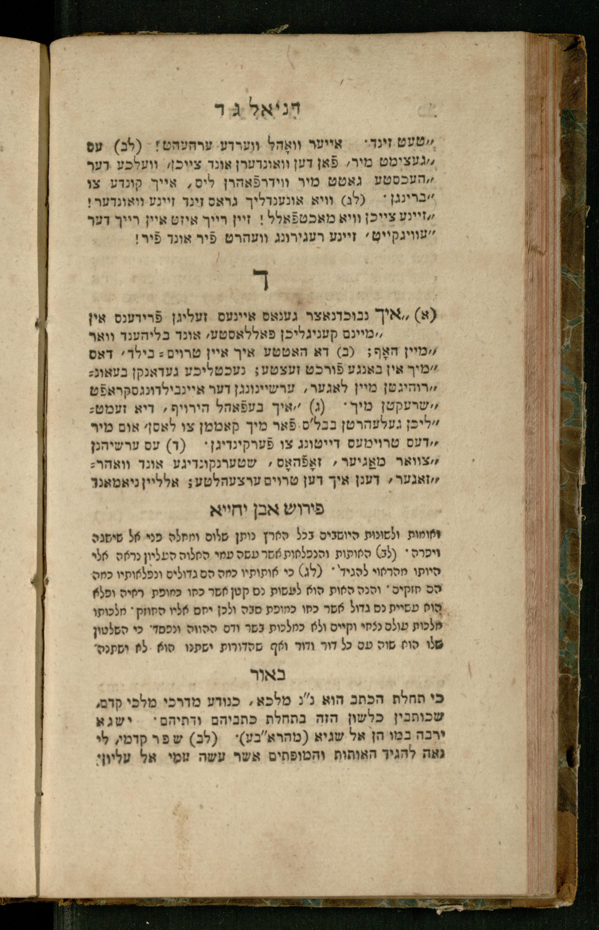 Sefer Daniʾel : meturgam bi-leshon Ashkenazi / me-et Ṿolf ben Yosef u-mevoʾar me-et Mosheh ben Uri Feivesh ṿe-nilṿeh elaṿ perush ha-Rav Ibn Yaḥyaספר דניאל : מתורגם בלשון אשכנזי / מאת וואלף בן יוסף ומבואר מאת משה בן אורי פייבש ונלוה אליו פירוש הרב אבן יחייא