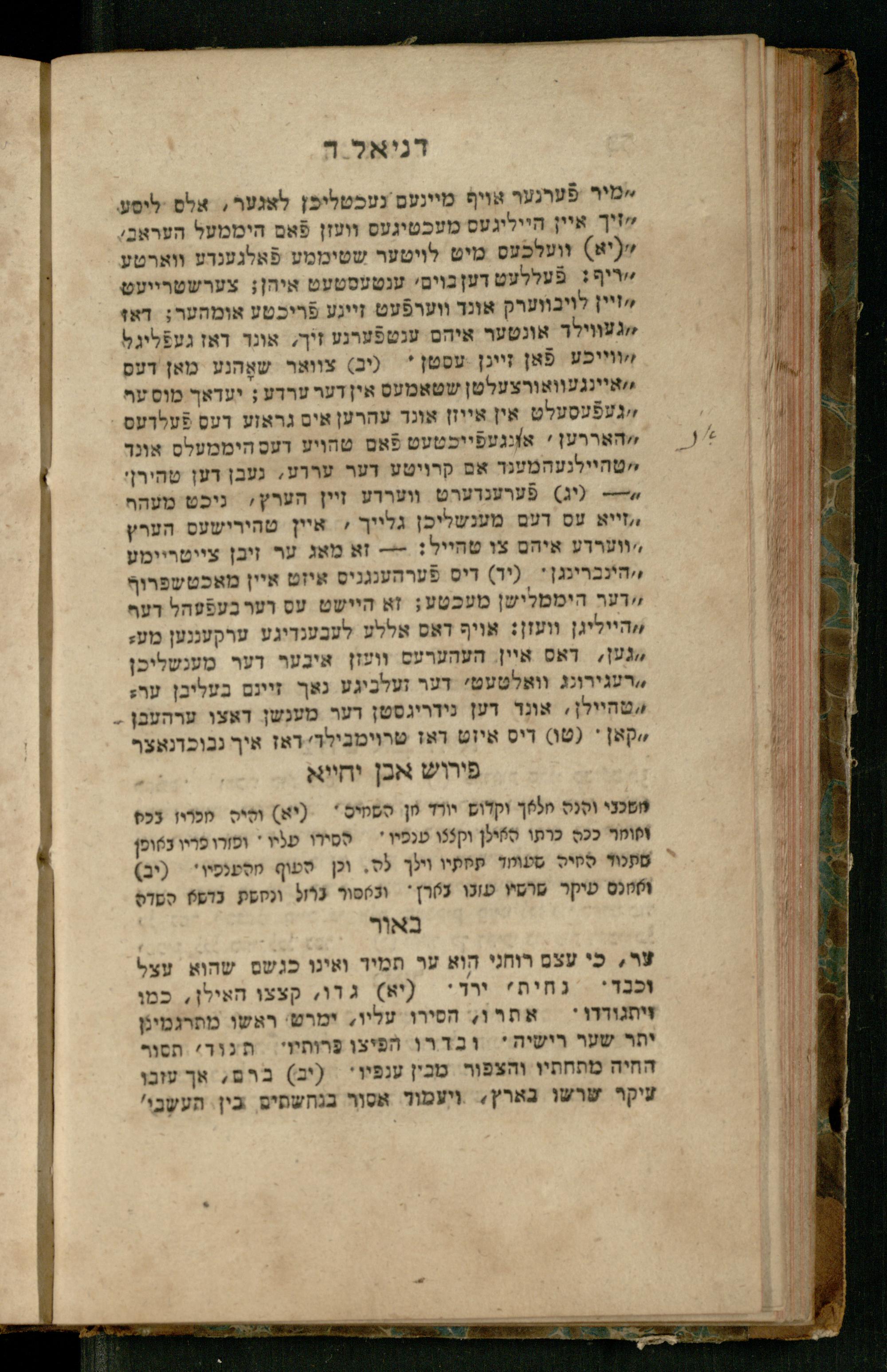 Sefer Daniʾel : meturgam bi-leshon Ashkenazi / me-et Ṿolf ben Yosef u-mevoʾar me-et Mosheh ben Uri Feivesh ṿe-nilṿeh elaṿ perush ha-Rav Ibn Yaḥyaספר דניאל : מתורגם בלשון אשכנזי / מאת וואלף בן יוסף ומבואר מאת משה בן אורי פייבש ונלוה אליו פירוש הרב אבן יחייא