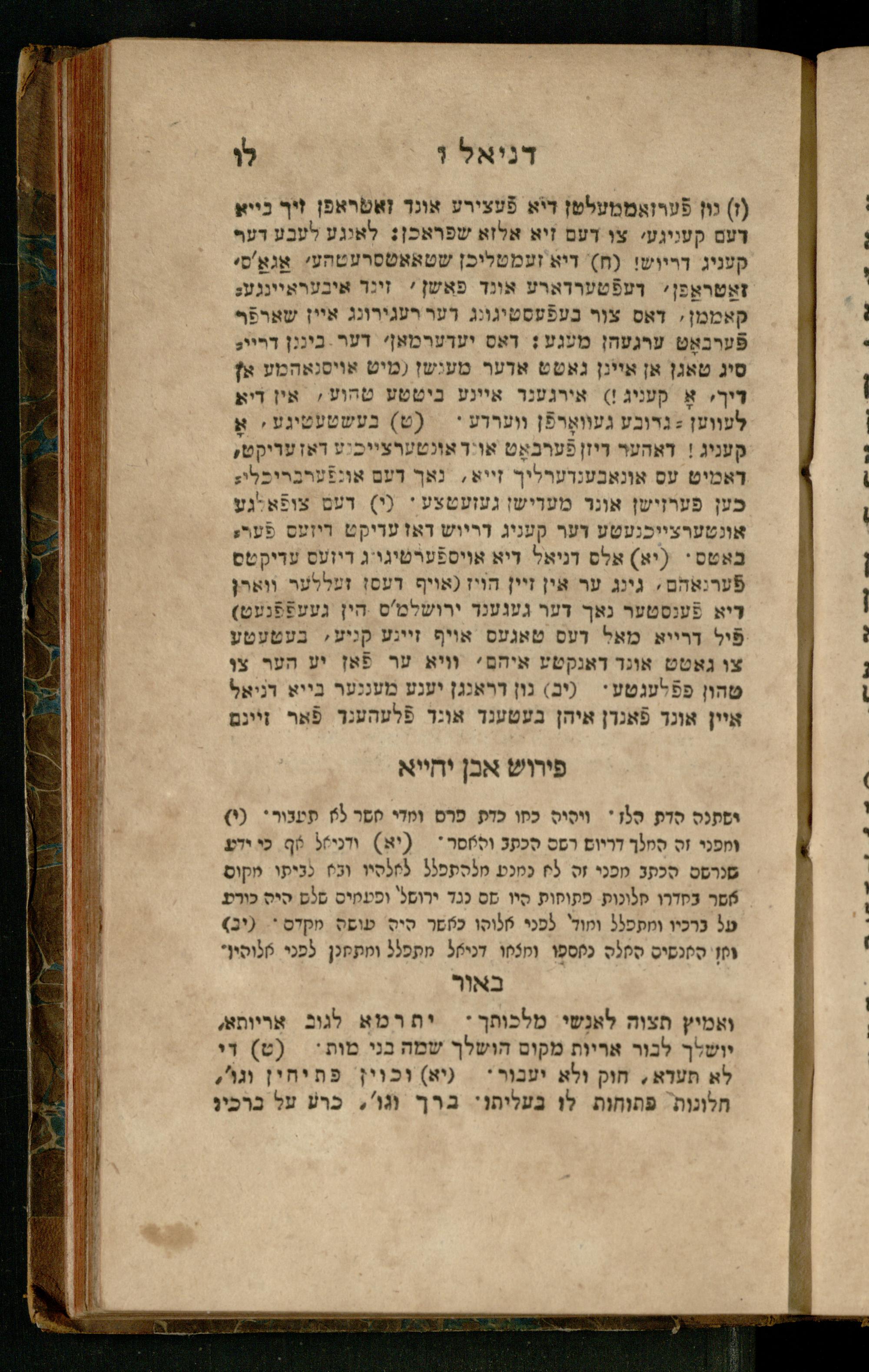 Sefer Daniʾel : meturgam bi-leshon Ashkenazi / me-et Ṿolf ben Yosef u-mevoʾar me-et Mosheh ben Uri Feivesh ṿe-nilṿeh elaṿ perush ha-Rav Ibn Yaḥyaספר דניאל : מתורגם בלשון אשכנזי / מאת וואלף בן יוסף ומבואר מאת משה בן אורי פייבש ונלוה אליו פירוש הרב אבן יחייא