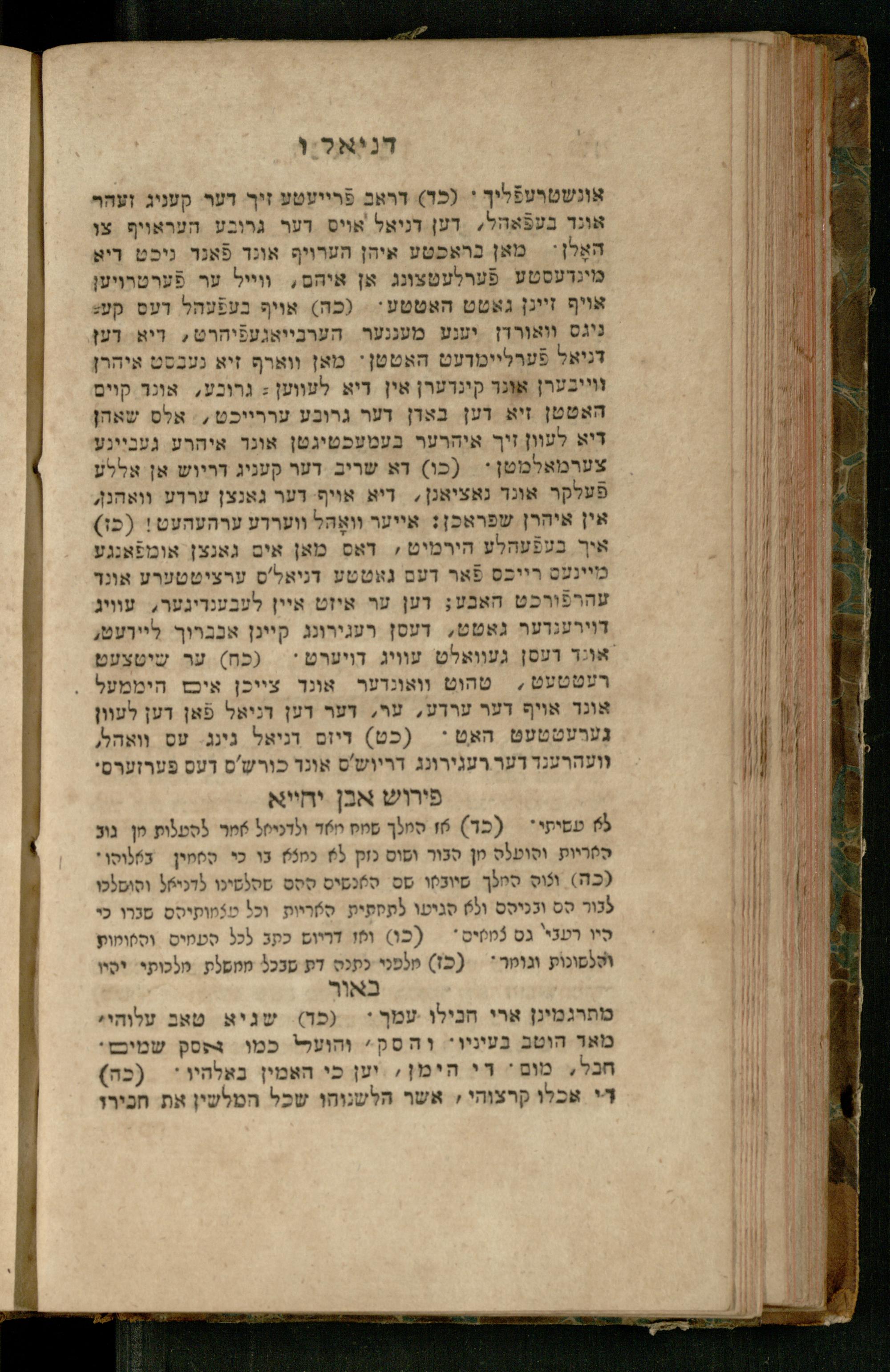 Sefer Daniʾel : meturgam bi-leshon Ashkenazi / me-et Ṿolf ben Yosef u-mevoʾar me-et Mosheh ben Uri Feivesh ṿe-nilṿeh elaṿ perush ha-Rav Ibn Yaḥyaספר דניאל : מתורגם בלשון אשכנזי / מאת וואלף בן יוסף ומבואר מאת משה בן אורי פייבש ונלוה אליו פירוש הרב אבן יחייא