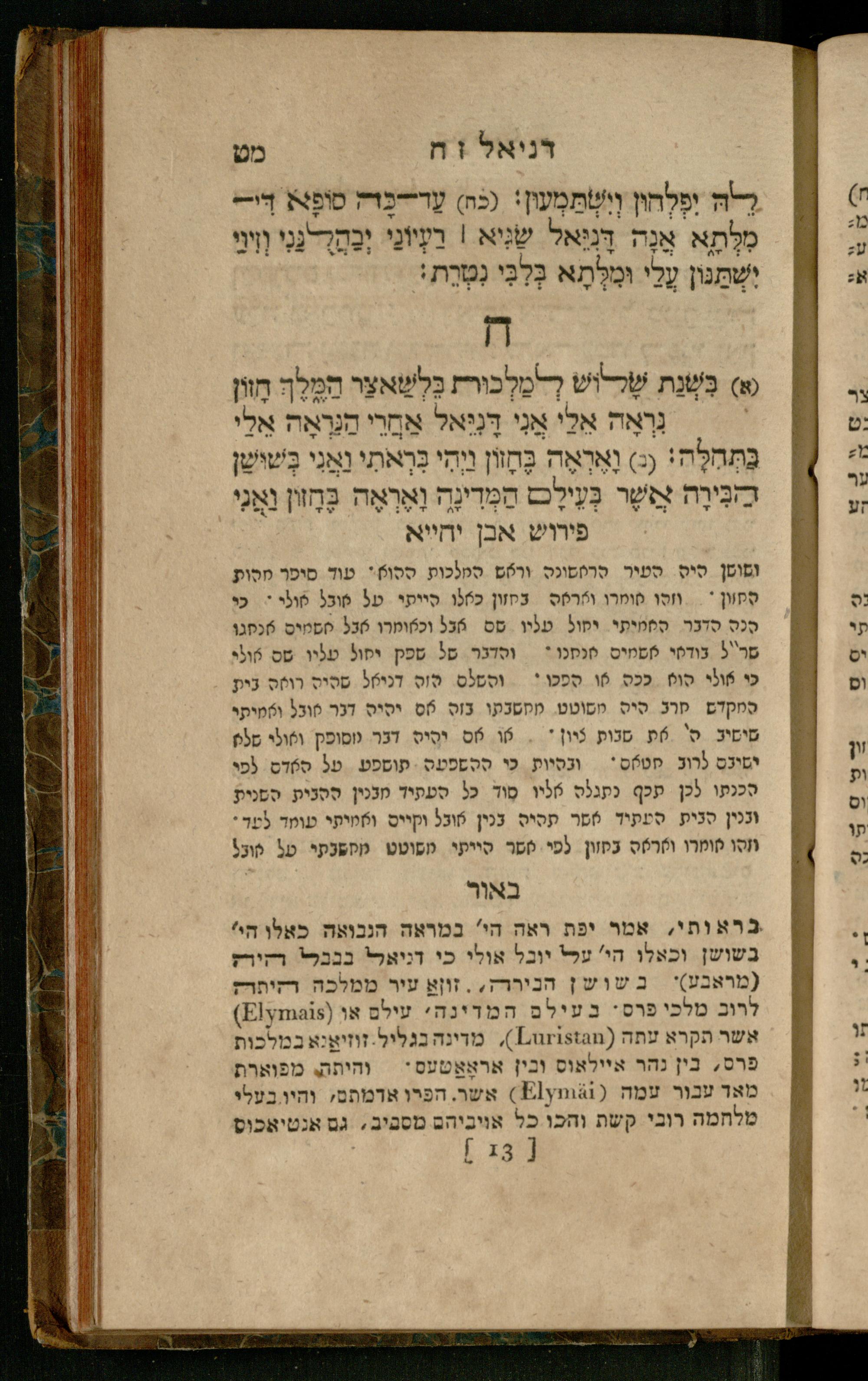 Sefer Daniʾel : meturgam bi-leshon Ashkenazi / me-et Ṿolf ben Yosef u-mevoʾar me-et Mosheh ben Uri Feivesh ṿe-nilṿeh elaṿ perush ha-Rav Ibn Yaḥyaספר דניאל : מתורגם בלשון אשכנזי / מאת וואלף בן יוסף ומבואר מאת משה בן אורי פייבש ונלוה אליו פירוש הרב אבן יחייא