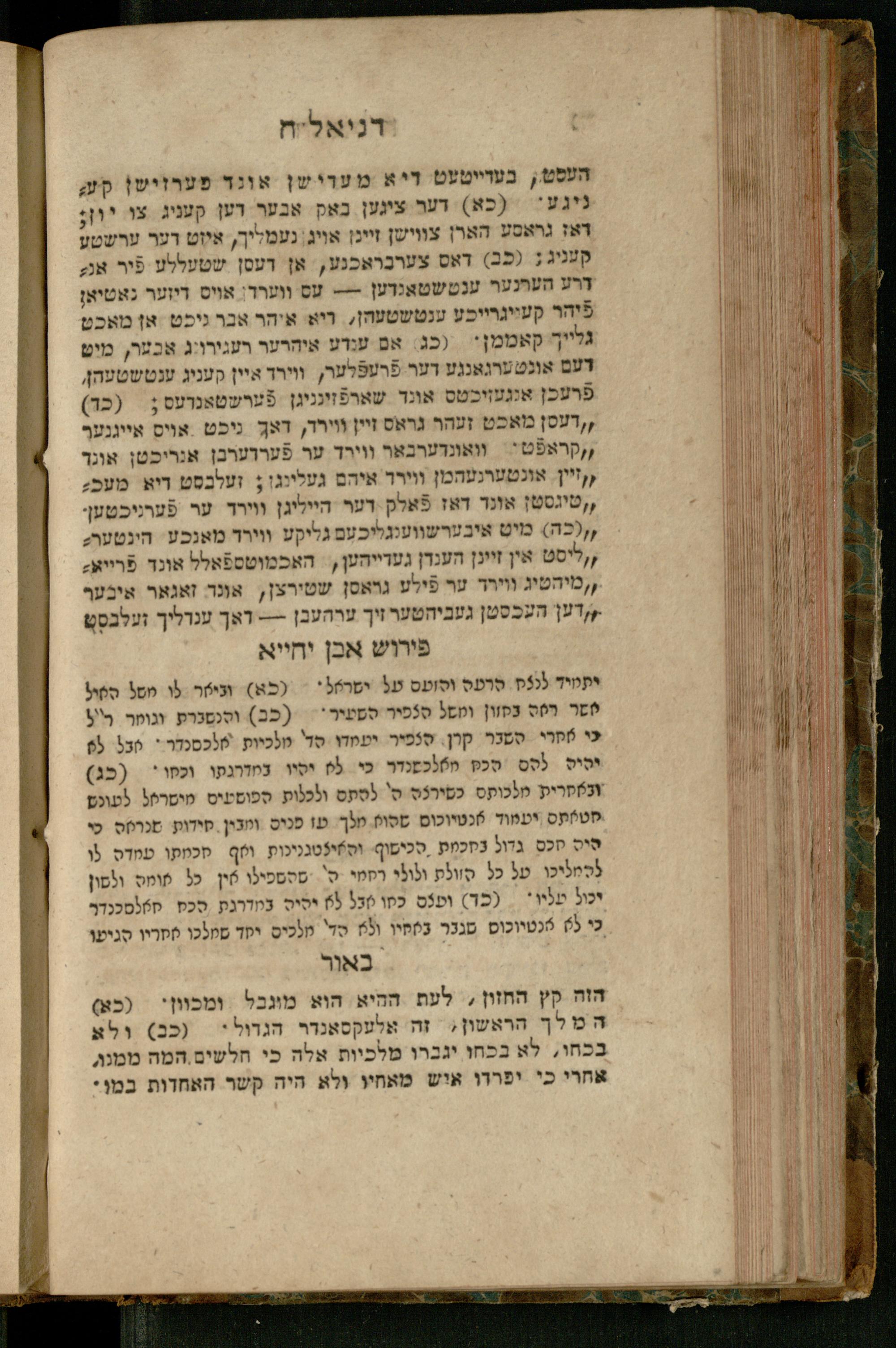 Sefer Daniʾel : meturgam bi-leshon Ashkenazi / me-et Ṿolf ben Yosef u-mevoʾar me-et Mosheh ben Uri Feivesh ṿe-nilṿeh elaṿ perush ha-Rav Ibn Yaḥyaספר דניאל : מתורגם בלשון אשכנזי / מאת וואלף בן יוסף ומבואר מאת משה בן אורי פייבש ונלוה אליו פירוש הרב אבן יחייא