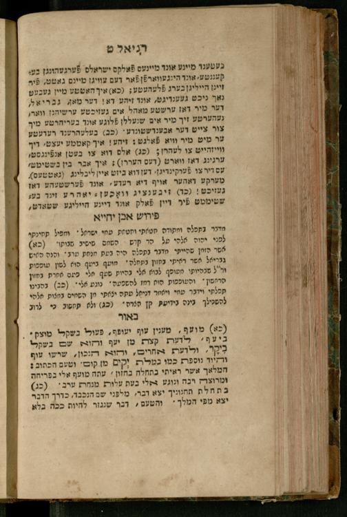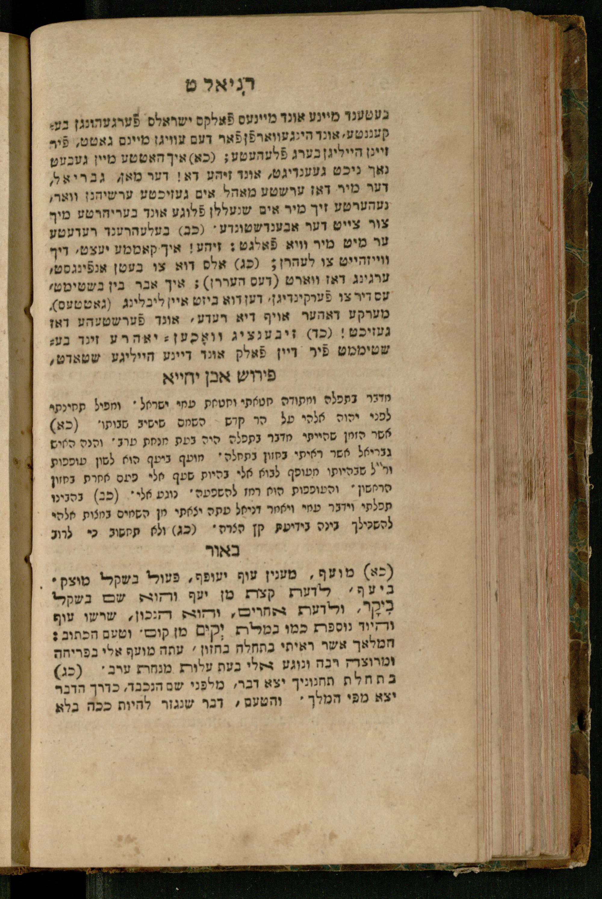 Sefer Daniʾel : meturgam bi-leshon Ashkenazi / me-et Ṿolf ben Yosef u-mevoʾar me-et Mosheh ben Uri Feivesh ṿe-nilṿeh elaṿ perush ha-Rav Ibn Yaḥyaספר דניאל : מתורגם בלשון אשכנזי / מאת וואלף בן יוסף ומבואר מאת משה בן אורי פייבש ונלוה אליו פירוש הרב אבן יחייא