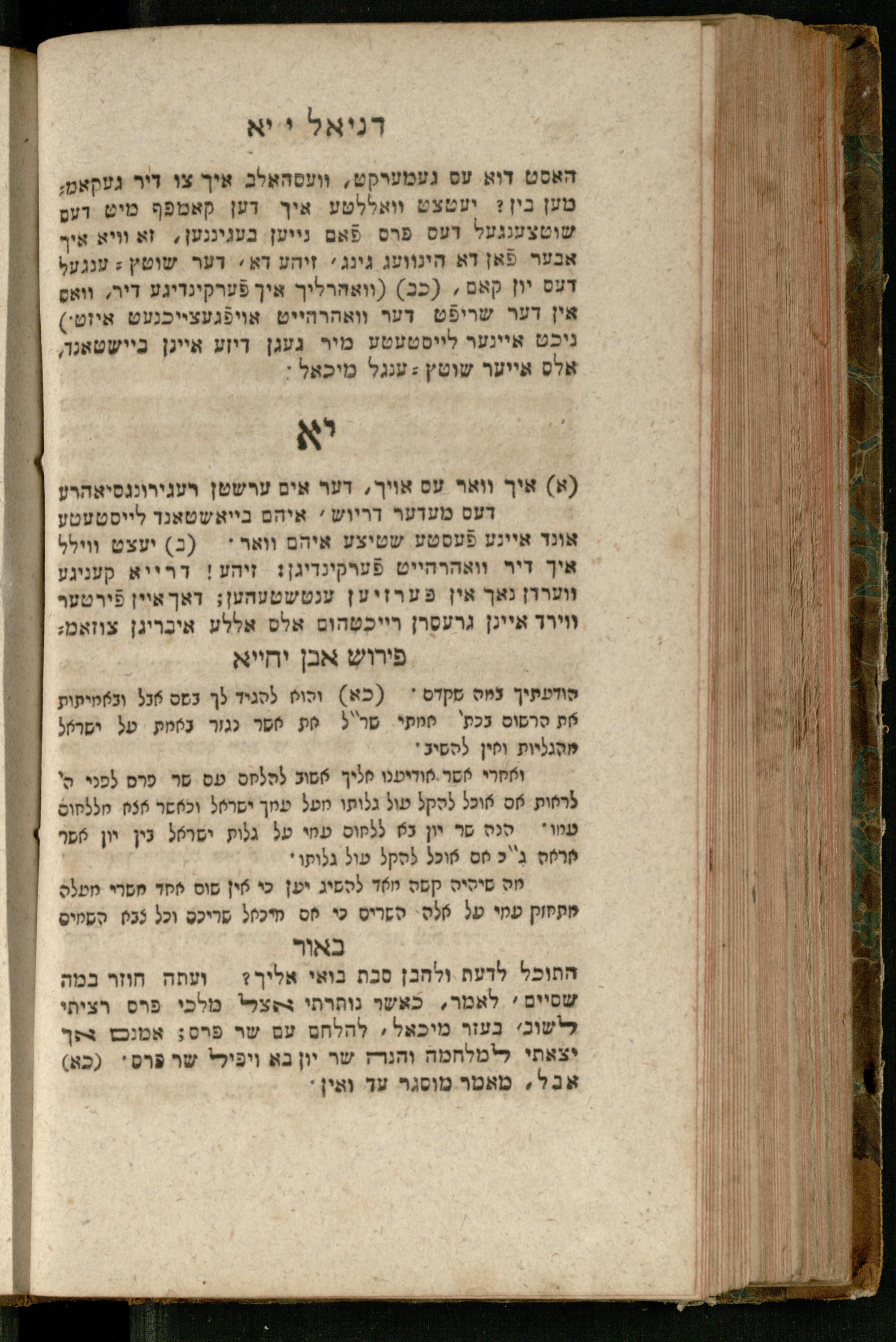 Sefer Daniʾel : meturgam bi-leshon Ashkenazi / me-et Ṿolf ben Yosef u-mevoʾar me-et Mosheh ben Uri Feivesh ṿe-nilṿeh elaṿ perush ha-Rav Ibn Yaḥyaספר דניאל : מתורגם בלשון אשכנזי / מאת וואלף בן יוסף ומבואר מאת משה בן אורי פייבש ונלוה אליו פירוש הרב אבן יחייא