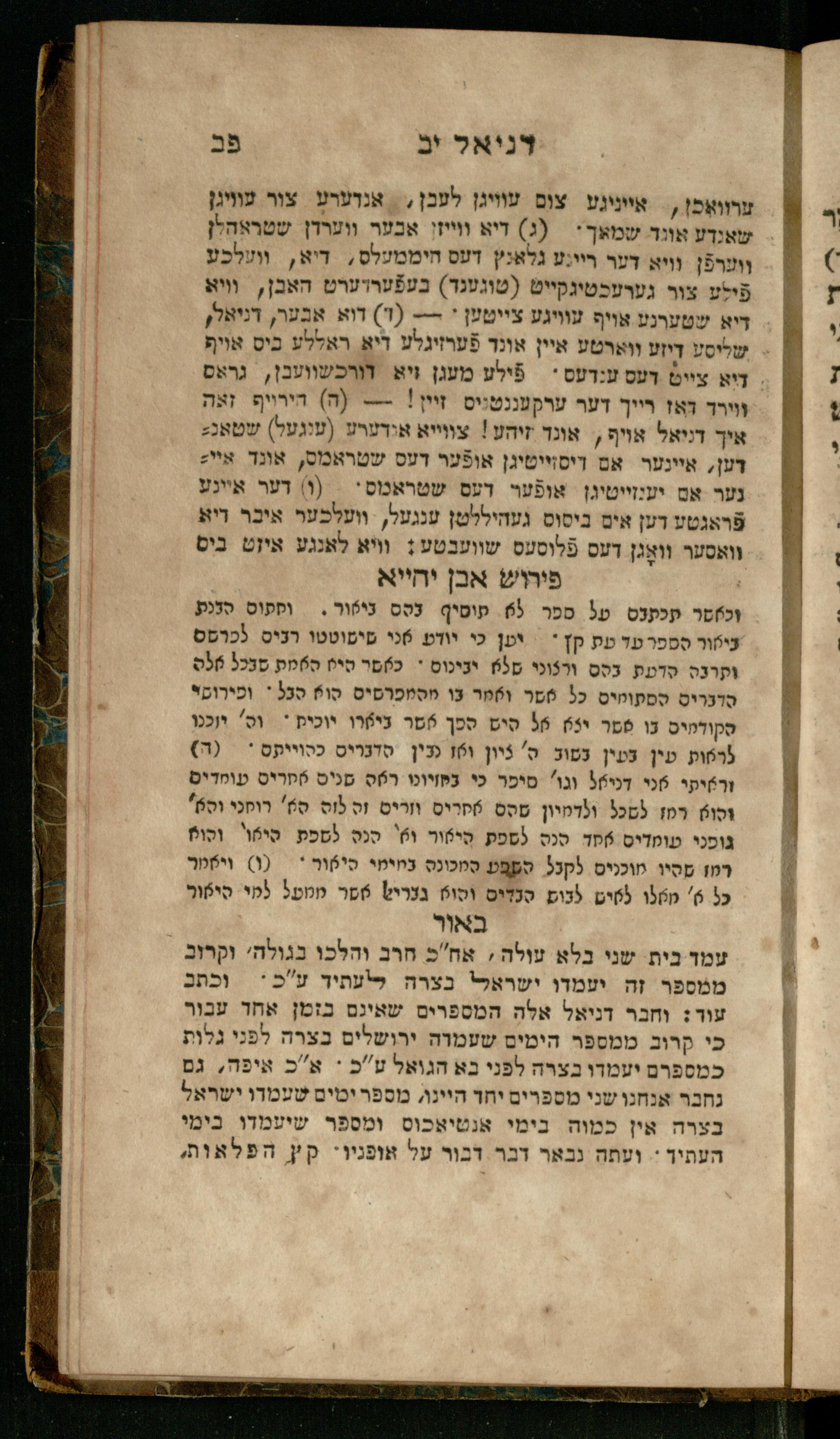 Sefer Daniʾel : meturgam bi-leshon Ashkenazi / me-et Ṿolf ben Yosef u-mevoʾar me-et Mosheh ben Uri Feivesh ṿe-nilṿeh elaṿ perush ha-Rav Ibn Yaḥyaספר דניאל : מתורגם בלשון אשכנזי / מאת וואלף בן יוסף ומבואר מאת משה בן אורי פייבש ונלוה אליו פירוש הרב אבן יחייא