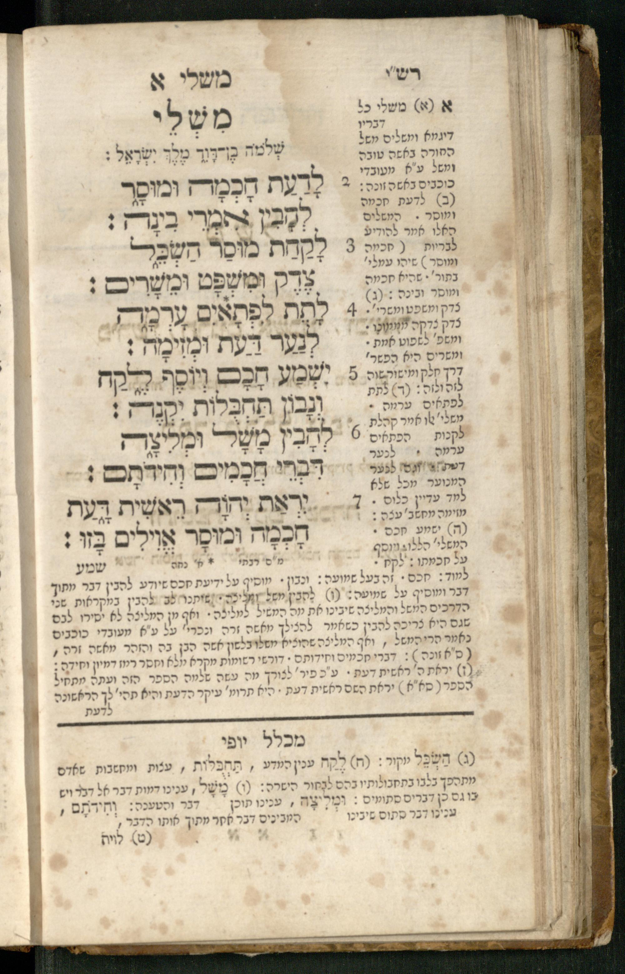 Mishle : ʿim beʾur ṿe-targum Ashkenazi : ke-asher nidpas be-ḳ.ḳ Berlin u-be-Ṿin ... nidpas gam Pe. Rashi ṿe-Sefer Mikhlal Yofi ʿim tosefet Leḳeṭ shikheḥah / asher hosif ʿalenu ... Yaʿaḳov Abendanahמשלי : עם ביאור ותרגום אשכנזי כאשר נדפס כאשר נדפס בק״ק ברלין ובווין ... נדפס גם פירש״י וספר מכלל יופי עם תוספת לקט שכחה / אשר הוסיף עליו ... יעקב אבנדאנה