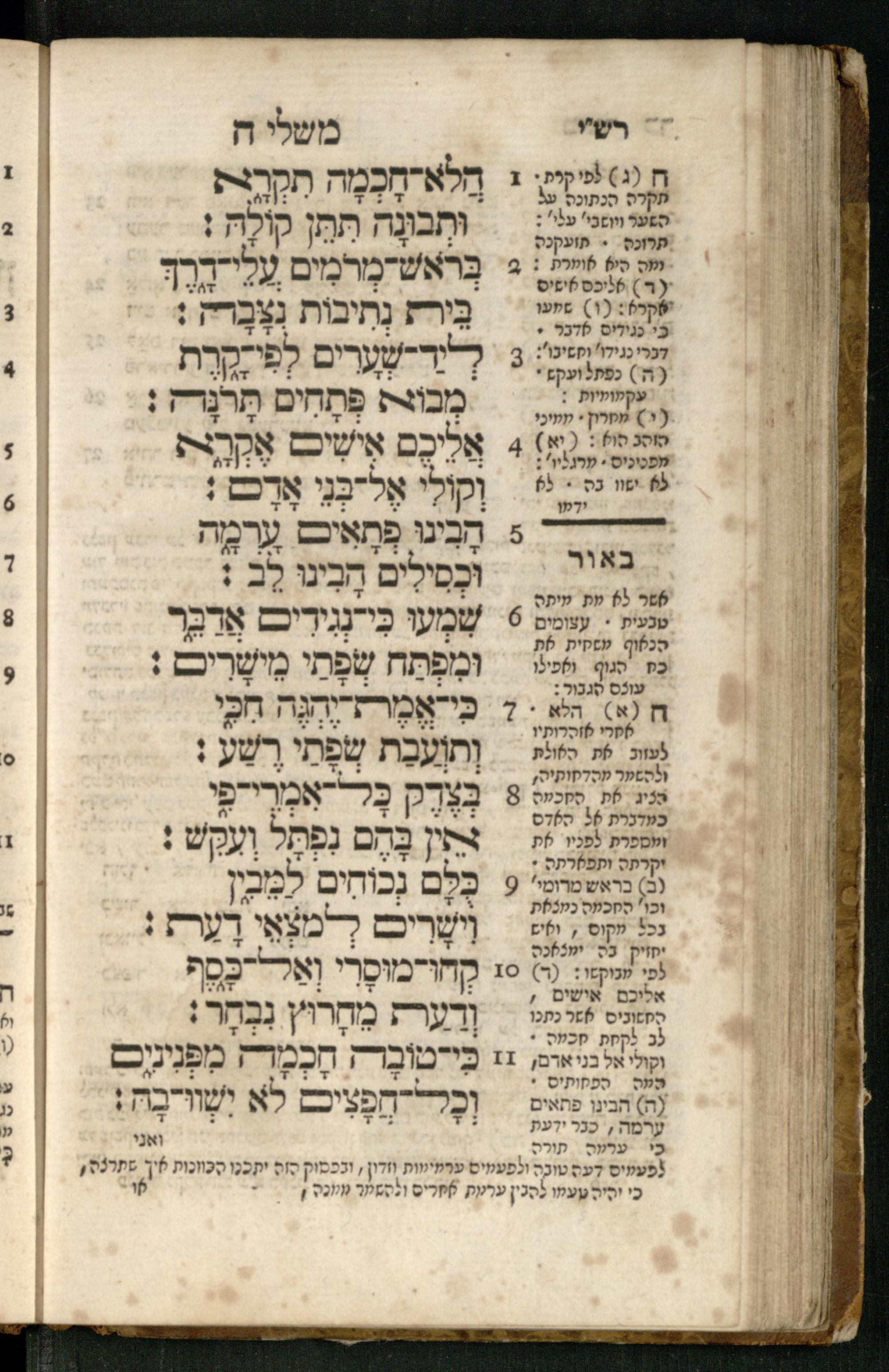 Mishle : ʿim beʾur ṿe-targum Ashkenazi : ke-asher nidpas be-ḳ.ḳ Berlin u-be-Ṿin ... nidpas gam Pe. Rashi ṿe-Sefer Mikhlal Yofi ʿim tosefet Leḳeṭ shikheḥah / asher hosif ʿalenu ... Yaʿaḳov Abendanahמשלי : עם ביאור ותרגום אשכנזי כאשר נדפס כאשר נדפס בק״ק ברלין ובווין ... נדפס גם פירש״י וספר מכלל יופי עם תוספת לקט שכחה / אשר הוסיף עליו ... יעקב אבנדאנה