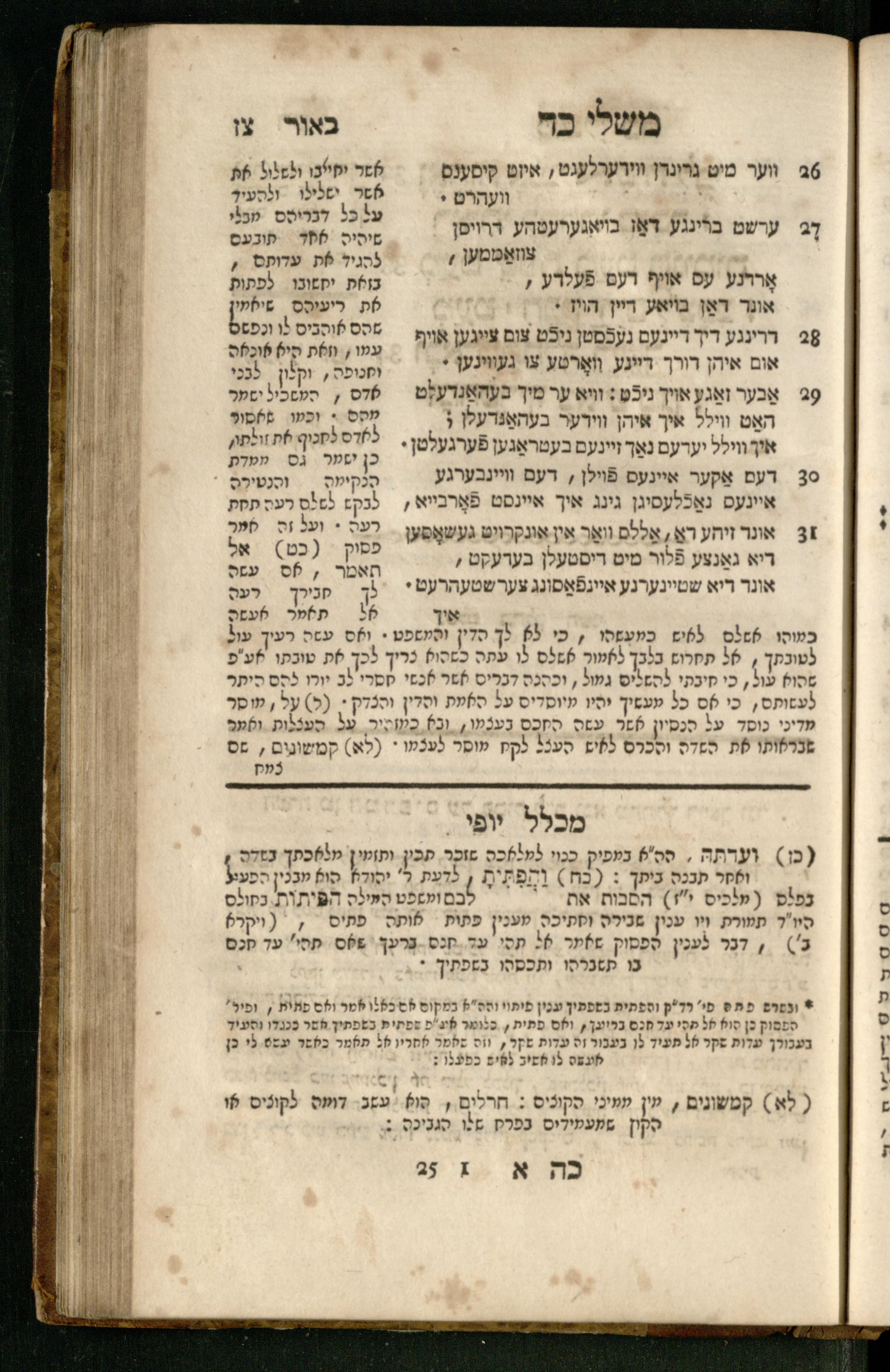 Mishle : ʿim beʾur ṿe-targum Ashkenazi : ke-asher nidpas be-ḳ.ḳ Berlin u-be-Ṿin ... nidpas gam Pe. Rashi ṿe-Sefer Mikhlal Yofi ʿim tosefet Leḳeṭ shikheḥah / asher hosif ʿalenu ... Yaʿaḳov Abendanahמשלי : עם ביאור ותרגום אשכנזי כאשר נדפס כאשר נדפס בק״ק ברלין ובווין ... נדפס גם פירש״י וספר מכלל יופי עם תוספת לקט שכחה / אשר הוסיף עליו ... יעקב אבנדאנה