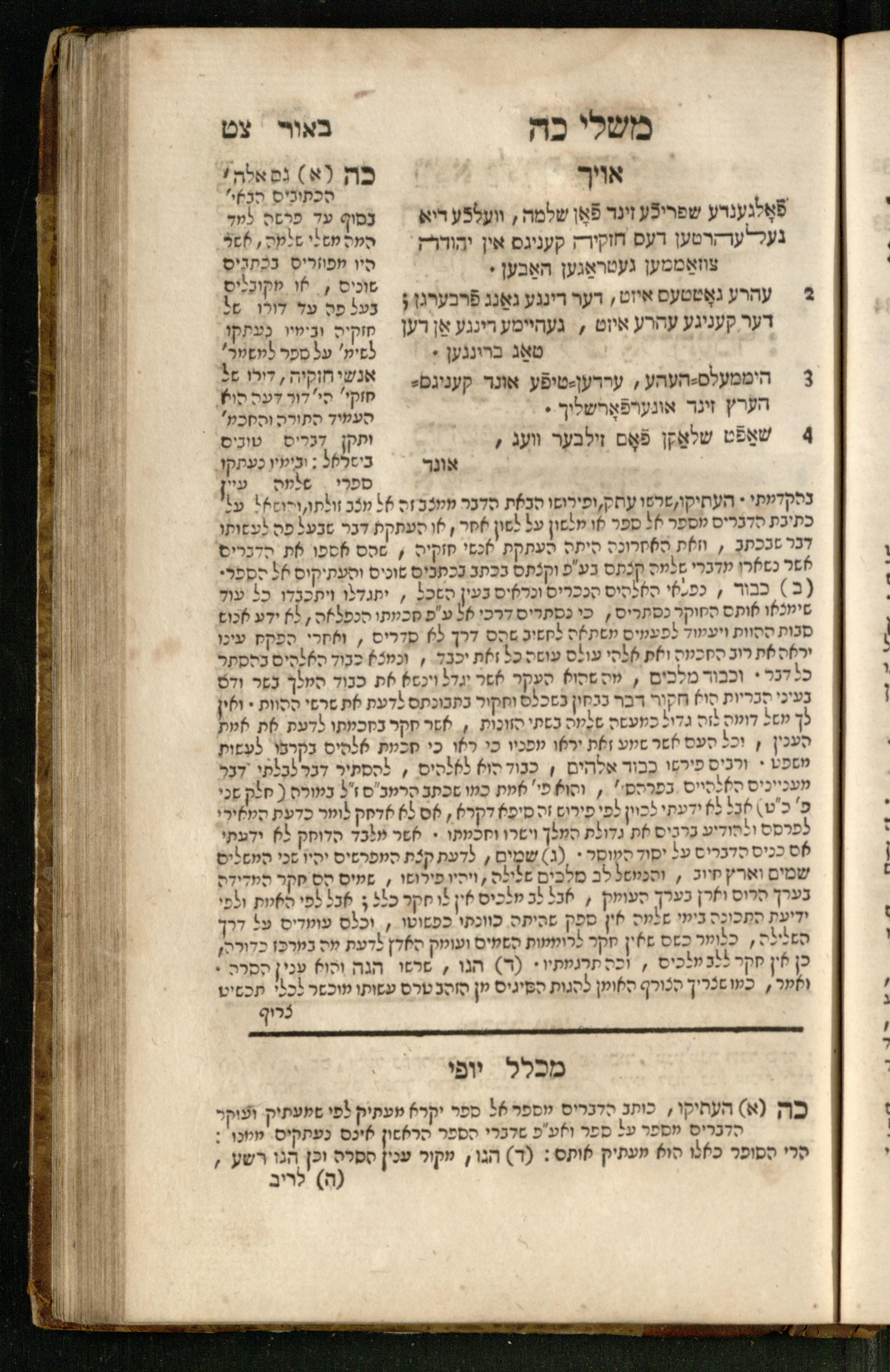 Mishle : ʿim beʾur ṿe-targum Ashkenazi : ke-asher nidpas be-ḳ.ḳ Berlin u-be-Ṿin ... nidpas gam Pe. Rashi ṿe-Sefer Mikhlal Yofi ʿim tosefet Leḳeṭ shikheḥah / asher hosif ʿalenu ... Yaʿaḳov Abendanahמשלי : עם ביאור ותרגום אשכנזי כאשר נדפס כאשר נדפס בק״ק ברלין ובווין ... נדפס גם פירש״י וספר מכלל יופי עם תוספת לקט שכחה / אשר הוסיף עליו ... יעקב אבנדאנה