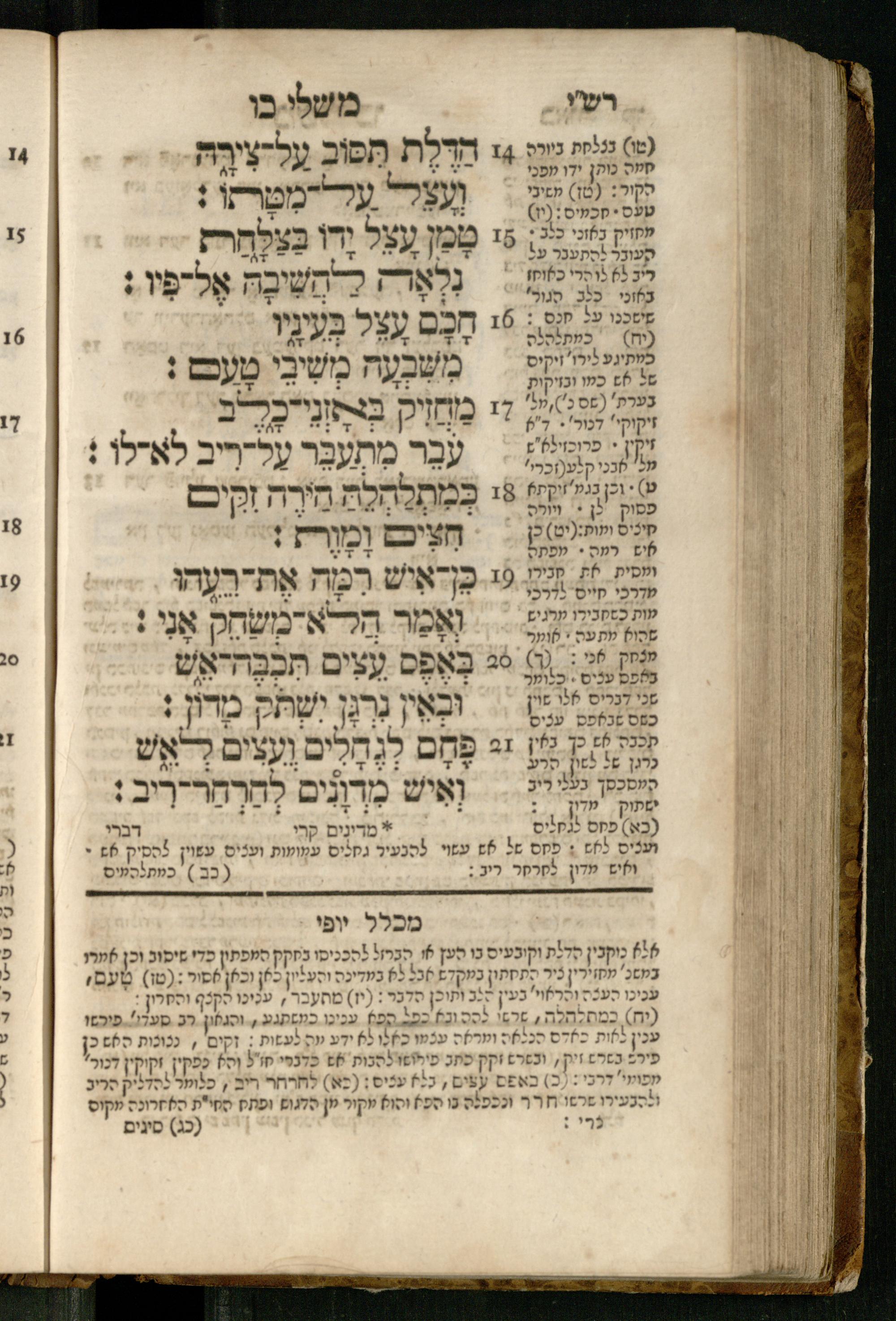 Mishle : ʿim beʾur ṿe-targum Ashkenazi : ke-asher nidpas be-ḳ.ḳ Berlin u-be-Ṿin ... nidpas gam Pe. Rashi ṿe-Sefer Mikhlal Yofi ʿim tosefet Leḳeṭ shikheḥah / asher hosif ʿalenu ... Yaʿaḳov Abendanahמשלי : עם ביאור ותרגום אשכנזי כאשר נדפס כאשר נדפס בק״ק ברלין ובווין ... נדפס גם פירש״י וספר מכלל יופי עם תוספת לקט שכחה / אשר הוסיף עליו ... יעקב אבנדאנה