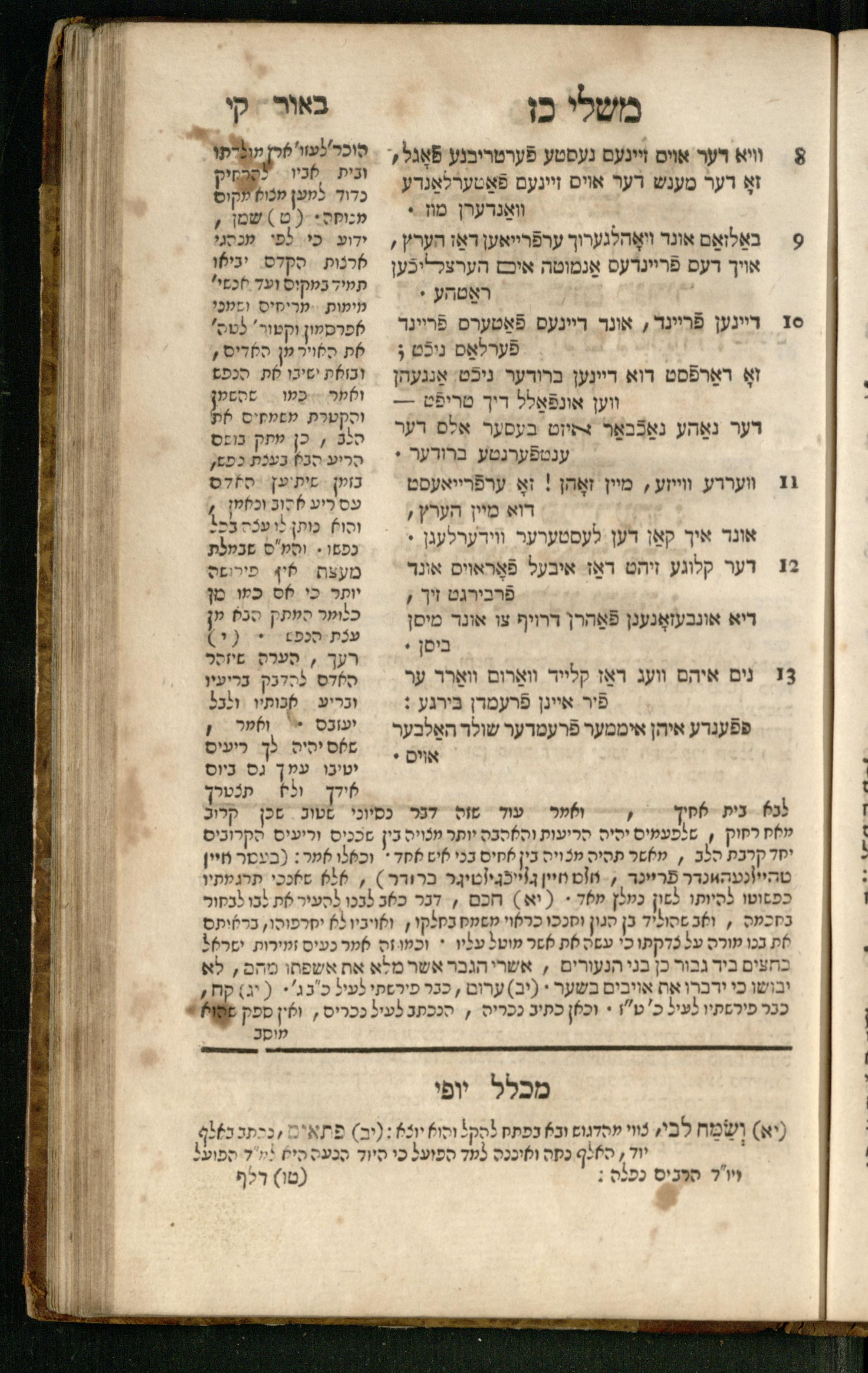 Mishle : ʿim beʾur ṿe-targum Ashkenazi : ke-asher nidpas be-ḳ.ḳ Berlin u-be-Ṿin ... nidpas gam Pe. Rashi ṿe-Sefer Mikhlal Yofi ʿim tosefet Leḳeṭ shikheḥah / asher hosif ʿalenu ... Yaʿaḳov Abendanahמשלי : עם ביאור ותרגום אשכנזי כאשר נדפס כאשר נדפס בק״ק ברלין ובווין ... נדפס גם פירש״י וספר מכלל יופי עם תוספת לקט שכחה / אשר הוסיף עליו ... יעקב אבנדאנה