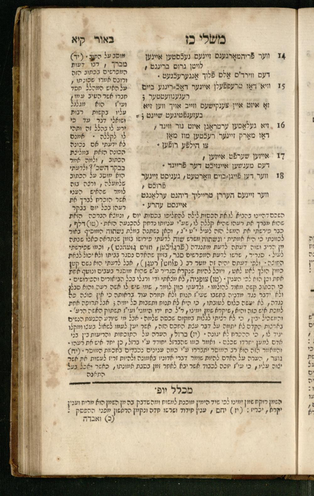 Mishle : ʿim beʾur ṿe-targum Ashkenazi : ke-asher nidpas be-ḳ.ḳ Berlin u-be-Ṿin ... nidpas gam Pe. Rashi ṿe-Sefer Mikhlal Yofi ʿim tosefet Leḳeṭ shikheḥah / asher hosif ʿalenu ... Yaʿaḳov Abendanahמשלי : עם ביאור ותרגום אשכנזי כאשר נדפס כאשר נדפס בק״ק ברלין ובווין ... נדפס גם פירש״י וספר מכלל יופי עם תוספת לקט שכחה / אשר הוסיף עליו ... יעקב אבנדאנה