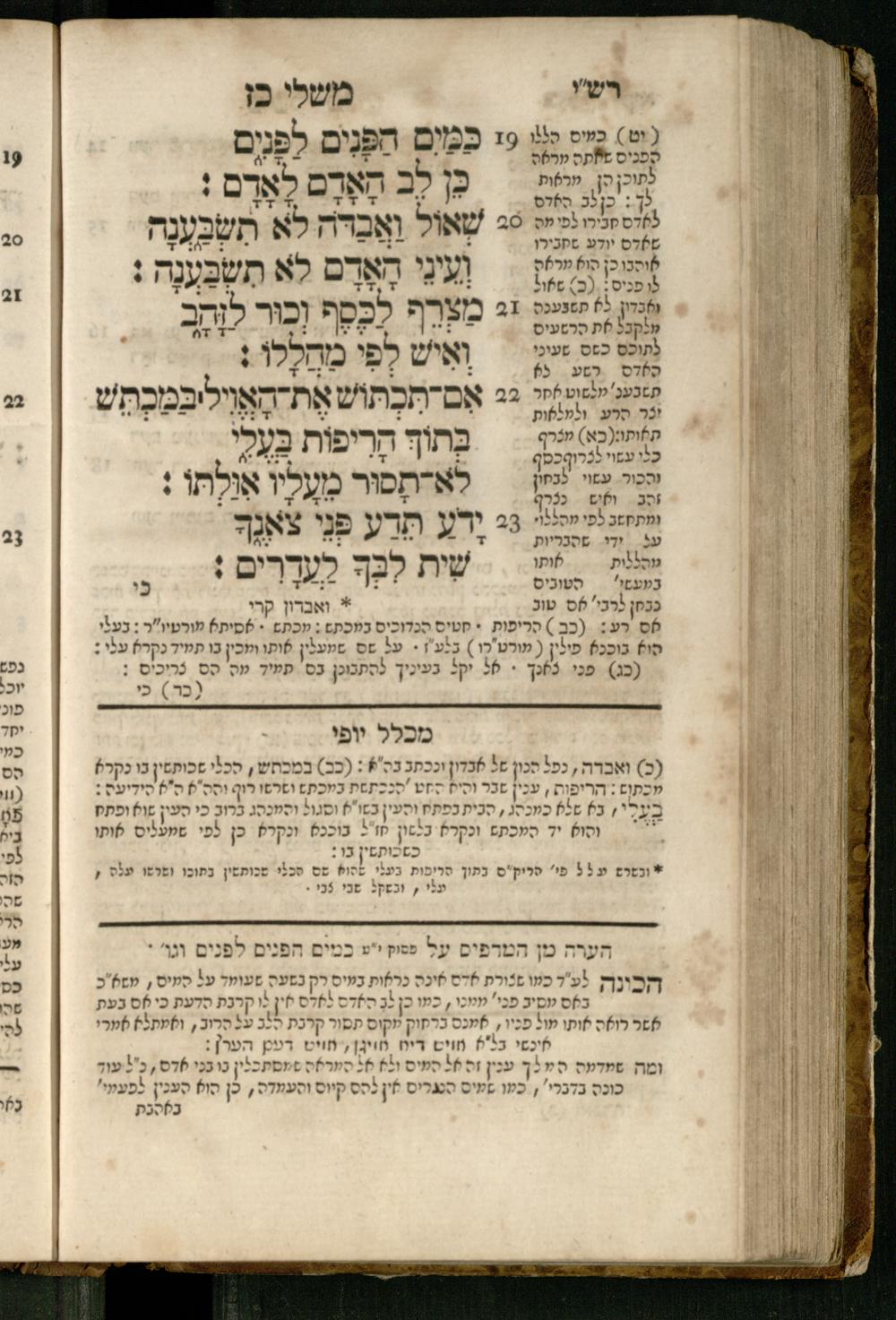 Mishle : ʿim beʾur ṿe-targum Ashkenazi : ke-asher nidpas be-ḳ.ḳ Berlin u-be-Ṿin ... nidpas gam Pe. Rashi ṿe-Sefer Mikhlal Yofi ʿim tosefet Leḳeṭ shikheḥah / asher hosif ʿalenu ... Yaʿaḳov Abendanahמשלי : עם ביאור ותרגום אשכנזי כאשר נדפס כאשר נדפס בק״ק ברלין ובווין ... נדפס גם פירש״י וספר מכלל יופי עם תוספת לקט שכחה / אשר הוסיף עליו ... יעקב אבנדאנה