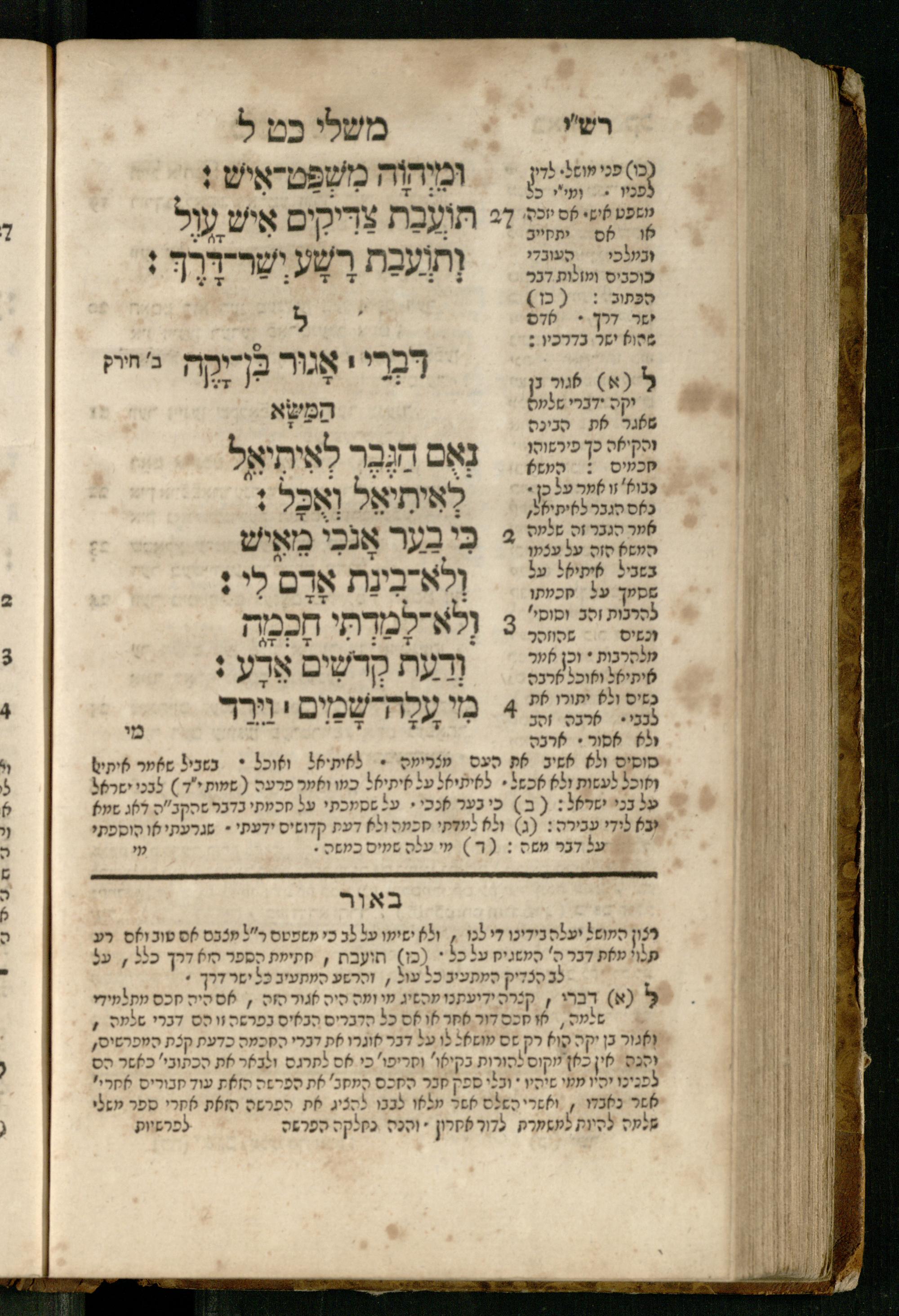 Mishle : ʿim beʾur ṿe-targum Ashkenazi : ke-asher nidpas be-ḳ.ḳ Berlin u-be-Ṿin ... nidpas gam Pe. Rashi ṿe-Sefer Mikhlal Yofi ʿim tosefet Leḳeṭ shikheḥah / asher hosif ʿalenu ... Yaʿaḳov Abendanahמשלי : עם ביאור ותרגום אשכנזי כאשר נדפס כאשר נדפס בק״ק ברלין ובווין ... נדפס גם פירש״י וספר מכלל יופי עם תוספת לקט שכחה / אשר הוסיף עליו ... יעקב אבנדאנה