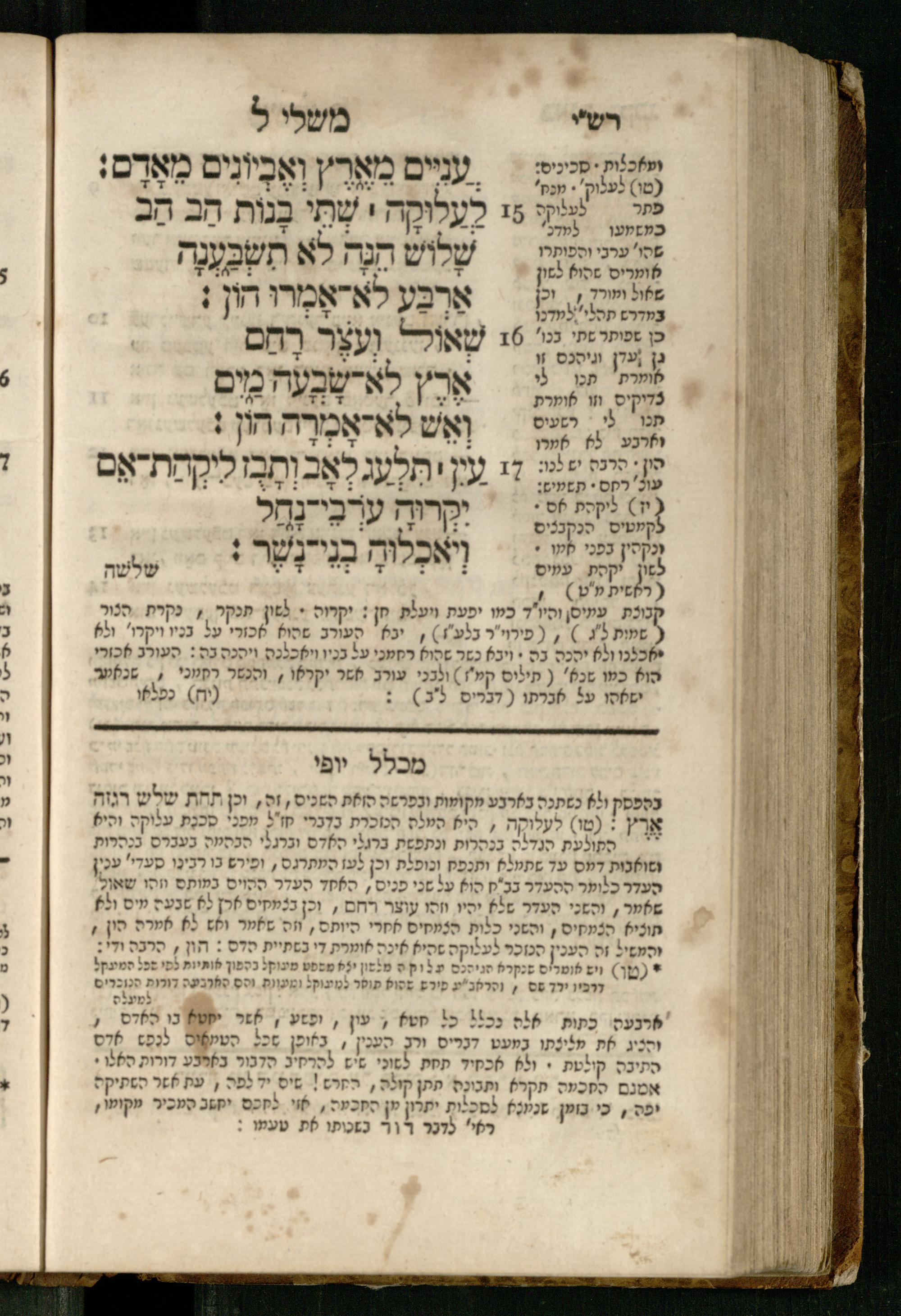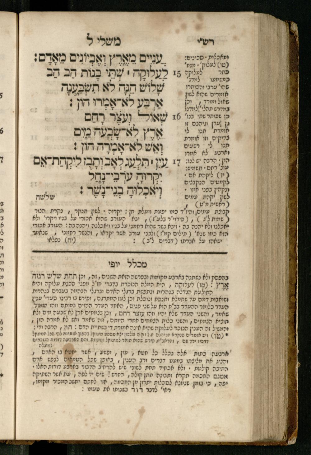 Mishle : ʿim beʾur ṿe-targum Ashkenazi : ke-asher nidpas be-ḳ.ḳ Berlin u-be-Ṿin ... nidpas gam Pe. Rashi ṿe-Sefer Mikhlal Yofi ʿim tosefet Leḳeṭ shikheḥah / asher hosif ʿalenu ... Yaʿaḳov Abendanahמשלי : עם ביאור ותרגום אשכנזי כאשר נדפס כאשר נדפס בק״ק ברלין ובווין ... נדפס גם פירש״י וספר מכלל יופי עם תוספת לקט שכחה / אשר הוסיף עליו ... יעקב אבנדאנה