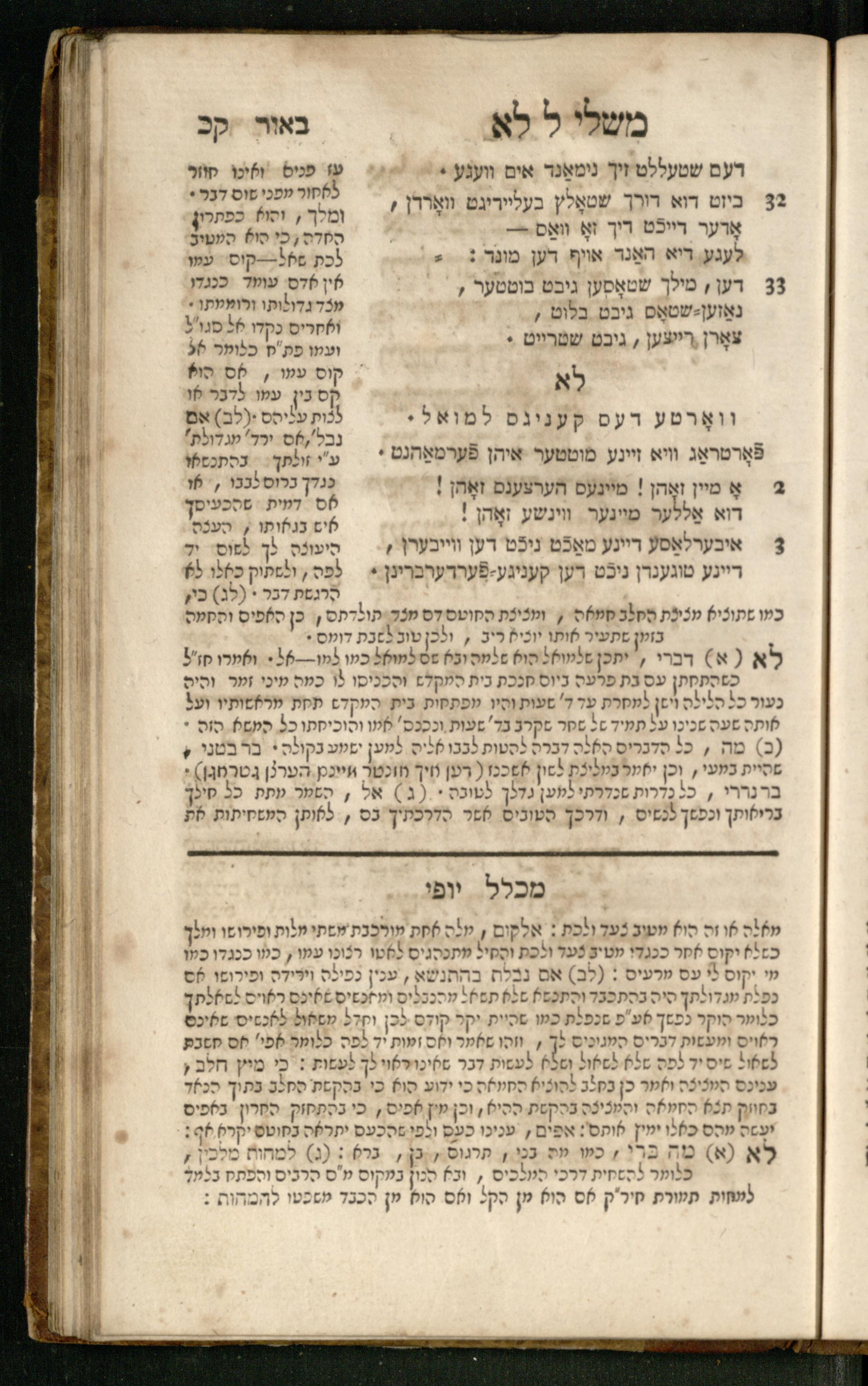 Mishle : ʿim beʾur ṿe-targum Ashkenazi : ke-asher nidpas be-ḳ.ḳ Berlin u-be-Ṿin ... nidpas gam Pe. Rashi ṿe-Sefer Mikhlal Yofi ʿim tosefet Leḳeṭ shikheḥah / asher hosif ʿalenu ... Yaʿaḳov Abendanahמשלי : עם ביאור ותרגום אשכנזי כאשר נדפס כאשר נדפס בק״ק ברלין ובווין ... נדפס גם פירש״י וספר מכלל יופי עם תוספת לקט שכחה / אשר הוסיף עליו ... יעקב אבנדאנה