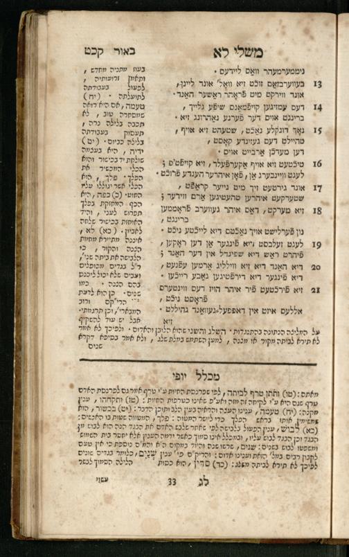 Mishle : ʿim beʾur ṿe-targum Ashkenazi : ke-asher nidpas be-ḳ.ḳ Berlin u-be-Ṿin ... nidpas gam Pe. Rashi ṿe-Sefer Mikhlal Yofi ʿim tosefet Leḳeṭ shikheḥah / asher hosif ʿalenu ... Yaʿaḳov Abendanahמשלי : עם ביאור ותרגום אשכנזי כאשר נדפס כאשר נדפס בק״ק ברלין ובווין ... נדפס גם פירש״י וספר מכלל יופי עם תוספת לקט שכחה / אשר הוסיף עליו ... יעקב אבנדאנה