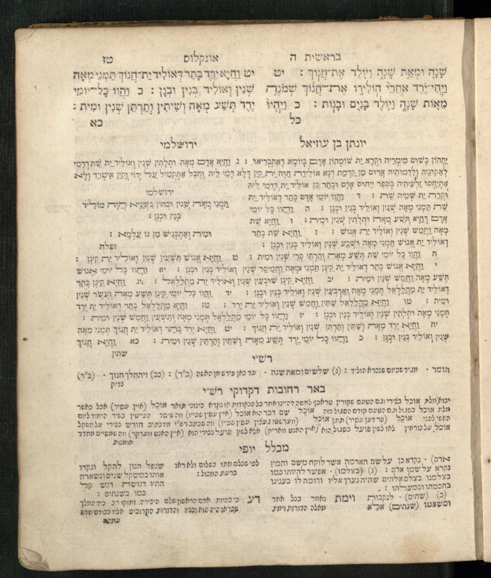 Sefer Be-reshit : ʿim 3 targumim ... pe. Rashi, u-ferush Rashbam u-ferush Mikhlal yofi min R. Shelomoh ben Melekh u-ferush Beʾer reḥovot ʿal diḳduḳe Rashi ... ṿe-Sefer ha-Ḥinukh me-Rabenu Aharon ha-Leṿi ... / huva le-vet ha-defus ʿa.y. ha-torani ha-mufla mo.h.r.R. Pinḥas Eliyahu ben ha-torani ha-manhig mo.h.r.R. Ḥayim Kats u-veno ha-torani ha-mufla mo.h.r.R. Shemuʾel Kats mi-ḳ.ḳ. Ṿilnaספר בראשית : עם ג׳ תרגומים ... פירש״י, ופירוש רש״בם ופירוש מכלל יופי מן ר׳ שלמה בן מלך ופירוש באר רחובות על דקדוקי רש״י ... וספר החינוך מרבינו אהרן הלוי ... / הובא לבית הדפוס ע״י התורני המופלא מוה״רר פנחס אליהו בן התורני המנהיג מוה״רר חיים כ״ץ ובנו התורני המופלא מוה״רר שמואל כ״ץ מק״ק ווילנא