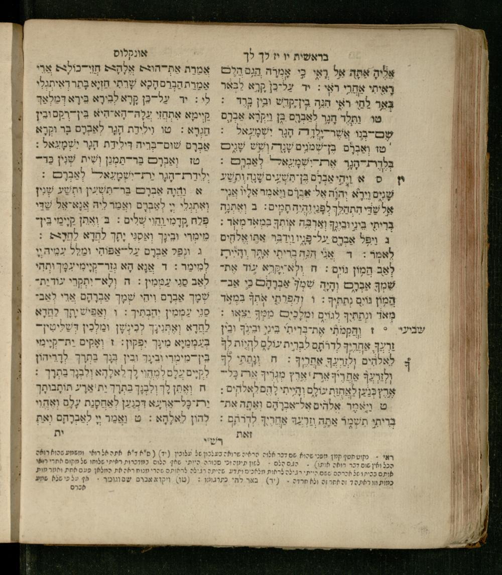 Sefer Be-reshit : ʿim 3 targumim ... pe. Rashi, u-ferush Rashbam u-ferush Mikhlal yofi min R. Shelomoh ben Melekh u-ferush Beʾer reḥovot ʿal diḳduḳe Rashi ... ṿe-Sefer ha-Ḥinukh me-Rabenu Aharon ha-Leṿi ... / huva le-vet ha-defus ʿa.y. ha-torani ha-mufla mo.h.r.R. Pinḥas Eliyahu ben ha-torani ha-manhig mo.h.r.R. Ḥayim Kats u-veno ha-torani ha-mufla mo.h.r.R. Shemuʾel Kats mi-ḳ.ḳ. Ṿilnaספר בראשית : עם ג׳ תרגומים ... פירש״י, ופירוש רש״בם ופירוש מכלל יופי מן ר׳ שלמה בן מלך ופירוש באר רחובות על דקדוקי רש״י ... וספר החינוך מרבינו אהרן הלוי ... / הובא לבית הדפוס ע״י התורני המופלא מוה״רר פנחס אליהו בן התורני המנהיג מוה״רר חיים כ״ץ ובנו התורני המופלא מוה״רר שמואל כ״ץ מק״ק ווילנא