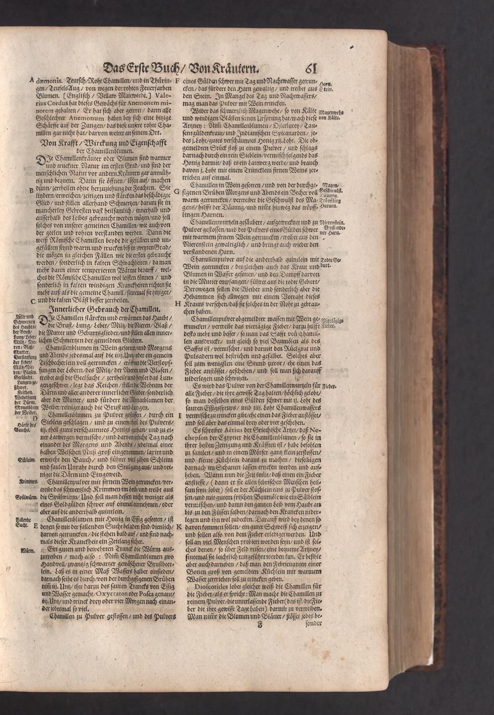 D. Jacobi Theodori Tabernaemontani, Neu vollkommen Kräuter-Buch : Darinnen Uber 3000. Kräuter/ mit schönen und kunstlichen Figuren/ auch deren Underscheid und Würckung/ samt ihren Namen in mancherley Sprachen/ beschrieben: Desgleichen auch/ wie dieselbige in allerhand Kranckheiten/ beyde der Menschen und des Viehs/ sollen angewendet und gebraucht werden/ angezeigt wird. Erstlichen durch Casparum Bauhinum D. und Profess. Basil. mit vielen neuen Figuren/ nutzlichen Artzneyen/ und anderem/ mit sonderem Fleis gebesseret/ Zum Andern Durch Hieronymum Bauhinum D. und Profess. Basil. mit sehr nutzlichen Marginalien, Synonimis, neuen Registeren und anderem vermehrt