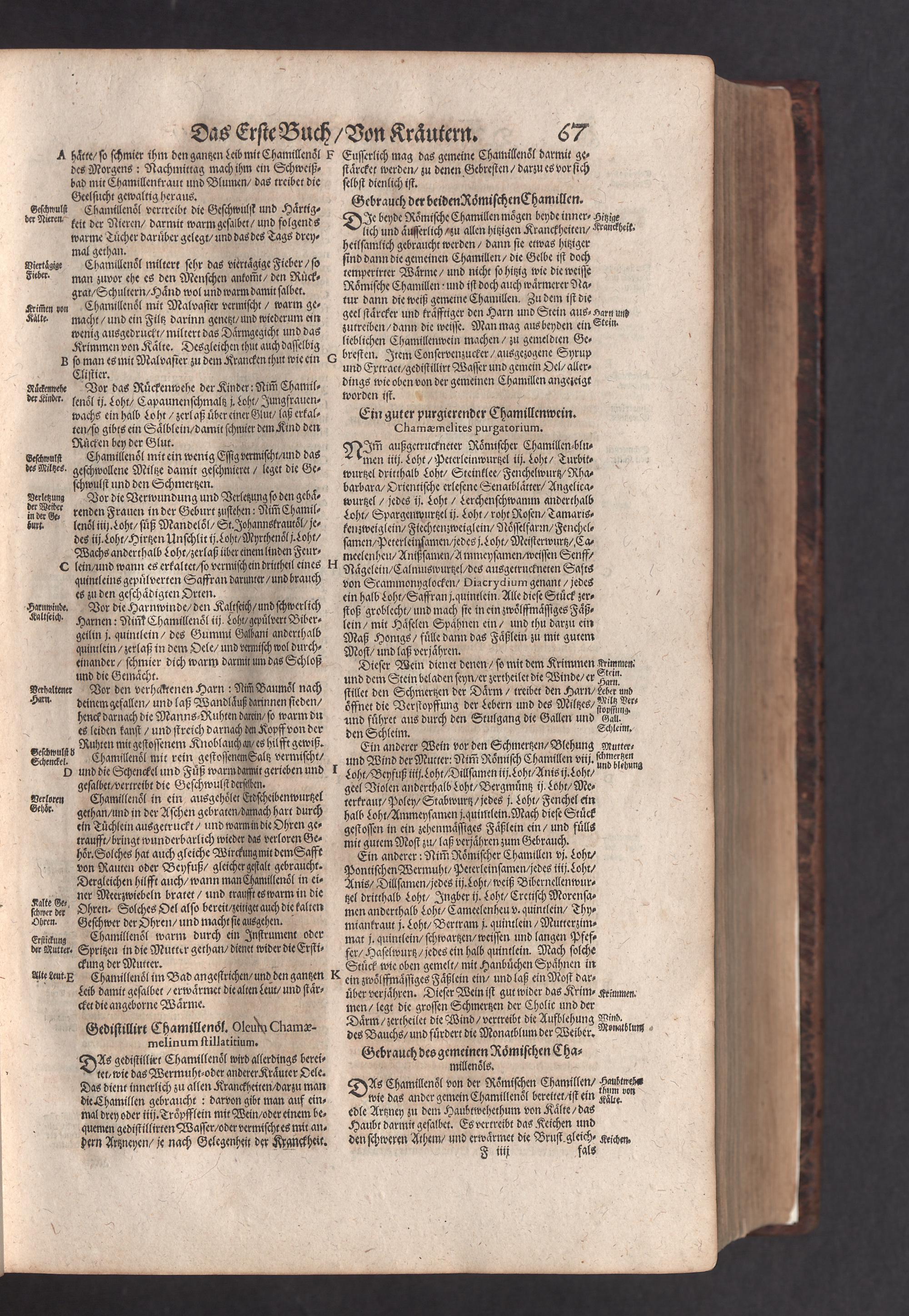 D. Jacobi Theodori Tabernaemontani, Neu vollkommen Kräuter-Buch : Darinnen Uber 3000. Kräuter/ mit schönen und kunstlichen Figuren/ auch deren Underscheid und Würckung/ samt ihren Namen in mancherley Sprachen/ beschrieben: Desgleichen auch/ wie dieselbige in allerhand Kranckheiten/ beyde der Menschen und des Viehs/ sollen angewendet und gebraucht werden/ angezeigt wird. Erstlichen durch Casparum Bauhinum D. und Profess. Basil. mit vielen neuen Figuren/ nutzlichen Artzneyen/ und anderem/ mit sonderem Fleis gebesseret/ Zum Andern Durch Hieronymum Bauhinum D. und Profess. Basil. mit sehr nutzlichen Marginalien, Synonimis, neuen Registeren und anderem vermehrt