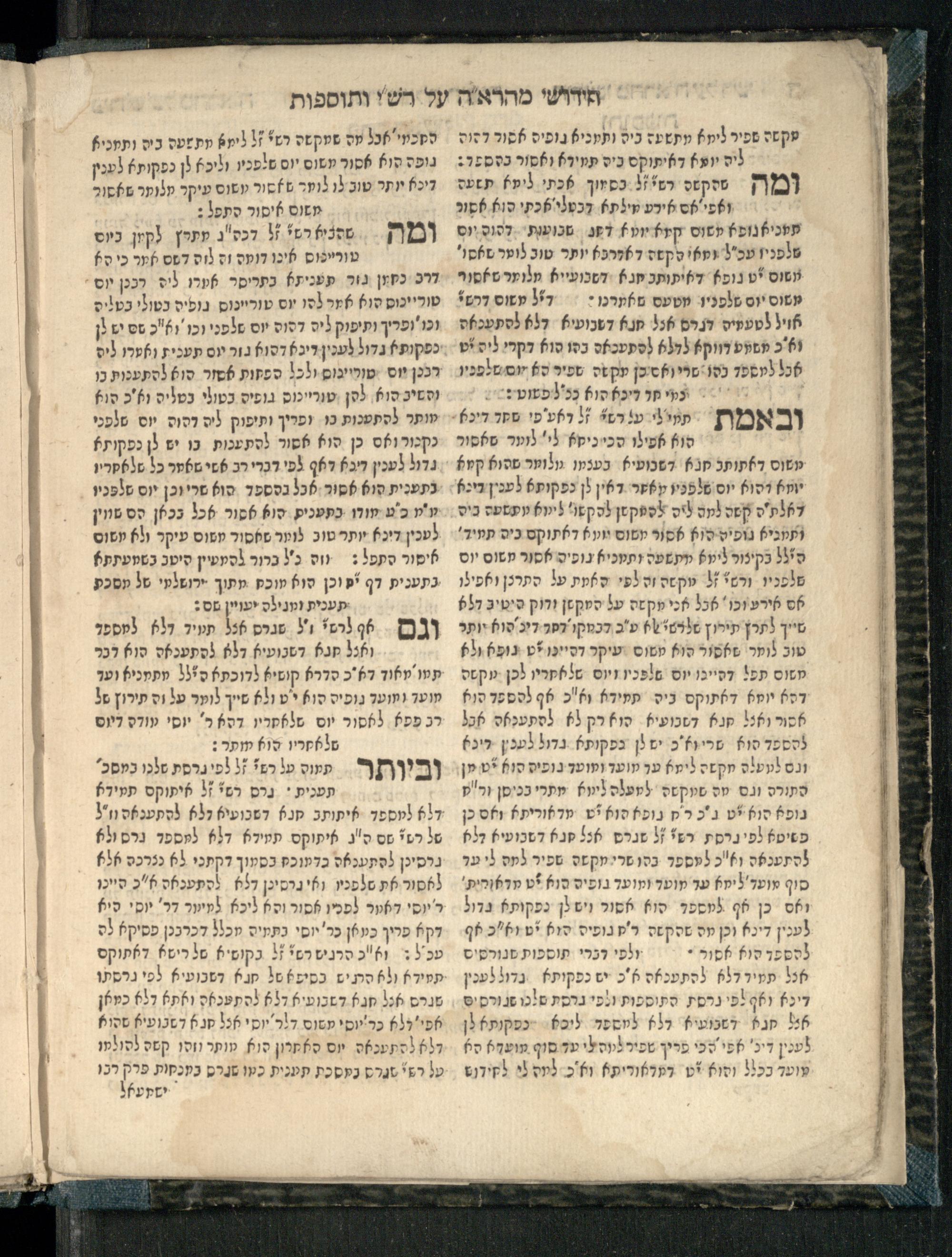 Masekhet Megilat Taʿanit : reʾeh zeh ḥadash asher lo hayah le-ʿolami masekhet zo ʿim perush maspiḳ she-nilḳaṭ min sugyot u-masḳanot Talmud Bavli ṿe-Talmud Yerushalmi, min Rashi ṿe-Tosafo. u-lifʿamim me-ḥadesh ha-meḥaber perush ... ṿe-niḳra shemo Perush kolel shel Maharʾah ʿal shem she-kolel kol ha-perushim Perush Rashi ṿe-Tosafot ... gam perush ʿal ha-Milo. zarot a.p. sefer ha-neḥmad ʿArukh ḥadash ṿe-hemah mi-tsad a. shel zeh ha-sefer u-mi-tsad ha-b. ḥidushe ha-meḥaber ... Ṿe-niḳraʾim Ḥidushe Maharah ʿal shemo ... Avraham ha-Leṿi ben ... Yosef Segal ... ben ... Avraham Perets Segal ... mi-ḳ.ḳ Ḳraḳa ...מסכת מגילת תענית : ראה זה חדש אשר לא היה לעולמי׳ מסכת זו עם פירוש מספיק שנילקט מן סוגיות ומסקנות תלמוד בבלי ותלמוד ירושלמי, מן רש״י ותוספו׳ ולפעמים מחדש המחבר פירוש ... ונקרא שמו פירוש כולל של מהרא״ה על שם שכולל כל הפירושים פירוש רש״י ותוספות ... גם פירוש על המלו׳ זרות ע״פ ספר הנחמד ערוך חדש והמה מצד א׳ של זה ספר ומצד הב׳ חידושי המחבר ... ונקראים חידושי מהרא״ה על שמו ... אברהם הלוי בן ... יוסף סג״ל ... בן ... אברהם פרץ סג״ל ... מק״ק קראקא
