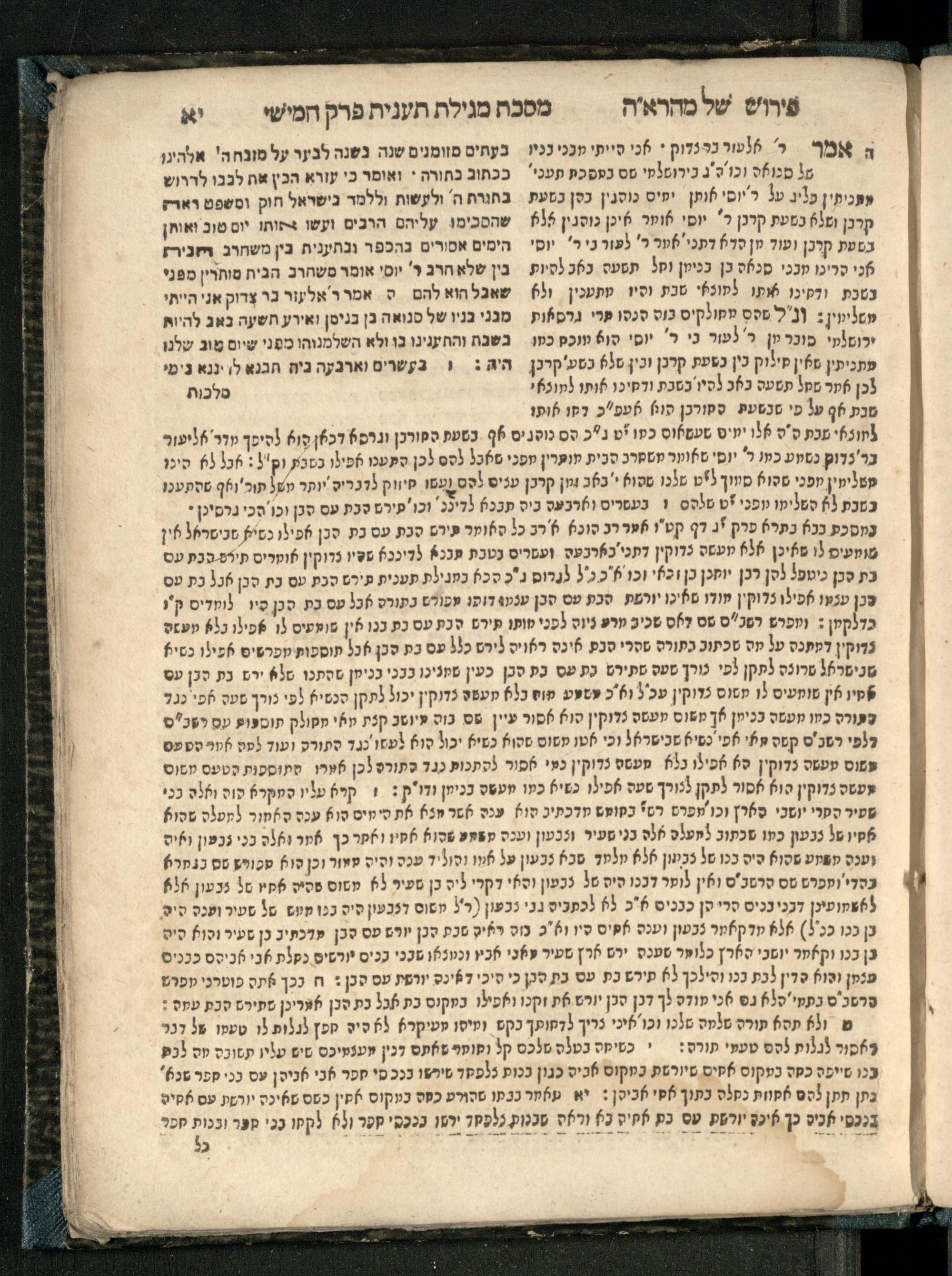 Masekhet Megilat Taʿanit : reʾeh zeh ḥadash asher lo hayah le-ʿolami masekhet zo ʿim perush maspiḳ she-nilḳaṭ min sugyot u-masḳanot Talmud Bavli ṿe-Talmud Yerushalmi, min Rashi ṿe-Tosafo. u-lifʿamim me-ḥadesh ha-meḥaber perush ... ṿe-niḳra shemo Perush kolel shel Maharʾah ʿal shem she-kolel kol ha-perushim Perush Rashi ṿe-Tosafot ... gam perush ʿal ha-Milo. zarot a.p. sefer ha-neḥmad ʿArukh ḥadash ṿe-hemah mi-tsad a. shel zeh ha-sefer u-mi-tsad ha-b. ḥidushe ha-meḥaber ... Ṿe-niḳraʾim Ḥidushe Maharah ʿal shemo ... Avraham ha-Leṿi ben ... Yosef Segal ... ben ... Avraham Perets Segal ... mi-ḳ.ḳ Ḳraḳa ...מסכת מגילת תענית : ראה זה חדש אשר לא היה לעולמי׳ מסכת זו עם פירוש מספיק שנילקט מן סוגיות ומסקנות תלמוד בבלי ותלמוד ירושלמי, מן רש״י ותוספו׳ ולפעמים מחדש המחבר פירוש ... ונקרא שמו פירוש כולל של מהרא״ה על שם שכולל כל הפירושים פירוש רש״י ותוספות ... גם פירוש על המלו׳ זרות ע״פ ספר הנחמד ערוך חדש והמה מצד א׳ של זה ספר ומצד הב׳ חידושי המחבר ... ונקראים חידושי מהרא״ה על שמו ... אברהם הלוי בן ... יוסף סג״ל ... בן ... אברהם פרץ סג״ל ... מק״ק קראקא