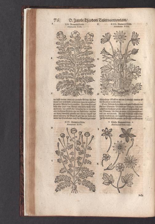 D. Jacobi Theodori Tabernaemontani, Neu vollkommen Kräuter-Buch : Darinnen Uber 3000. Kräuter/ mit schönen und kunstlichen Figuren/ auch deren Underscheid und Würckung/ samt ihren Namen in mancherley Sprachen/ beschrieben: Desgleichen auch/ wie dieselbige in allerhand Kranckheiten/ beyde der Menschen und des Viehs/ sollen angewendet und gebraucht werden/ angezeigt wird. Erstlichen durch Casparum Bauhinum D. und Profess. Basil. mit vielen neuen Figuren/ nutzlichen Artzneyen/ und anderem/ mit sonderem Fleis gebesseret/ Zum Andern Durch Hieronymum Bauhinum D. und Profess. Basil. mit sehr nutzlichen Marginalien, Synonimis, neuen Registeren und anderem vermehrt
