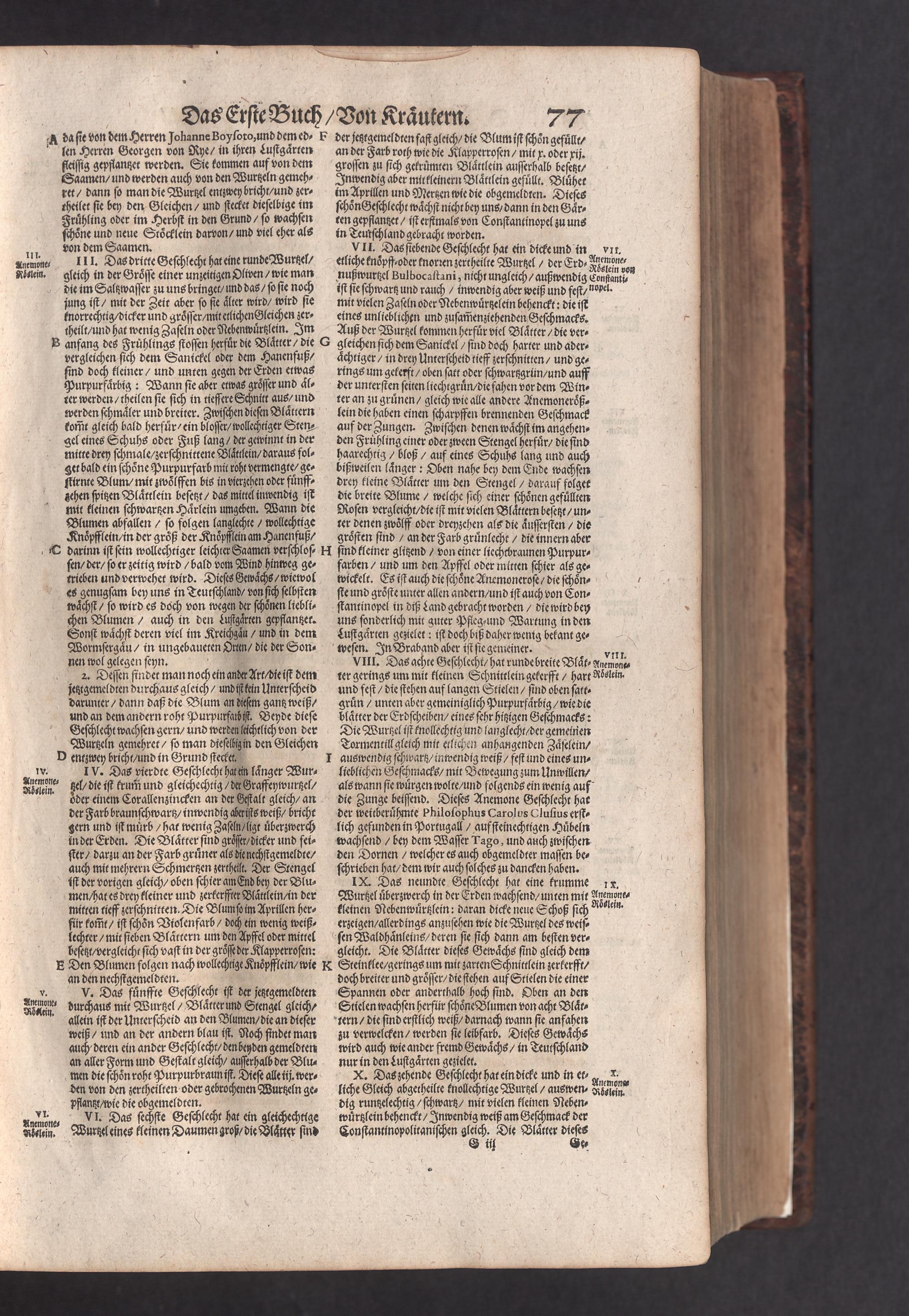 D. Jacobi Theodori Tabernaemontani, Neu vollkommen Kräuter-Buch : Darinnen Uber 3000. Kräuter/ mit schönen und kunstlichen Figuren/ auch deren Underscheid und Würckung/ samt ihren Namen in mancherley Sprachen/ beschrieben: Desgleichen auch/ wie dieselbige in allerhand Kranckheiten/ beyde der Menschen und des Viehs/ sollen angewendet und gebraucht werden/ angezeigt wird. Erstlichen durch Casparum Bauhinum D. und Profess. Basil. mit vielen neuen Figuren/ nutzlichen Artzneyen/ und anderem/ mit sonderem Fleis gebesseret/ Zum Andern Durch Hieronymum Bauhinum D. und Profess. Basil. mit sehr nutzlichen Marginalien, Synonimis, neuen Registeren und anderem vermehrt