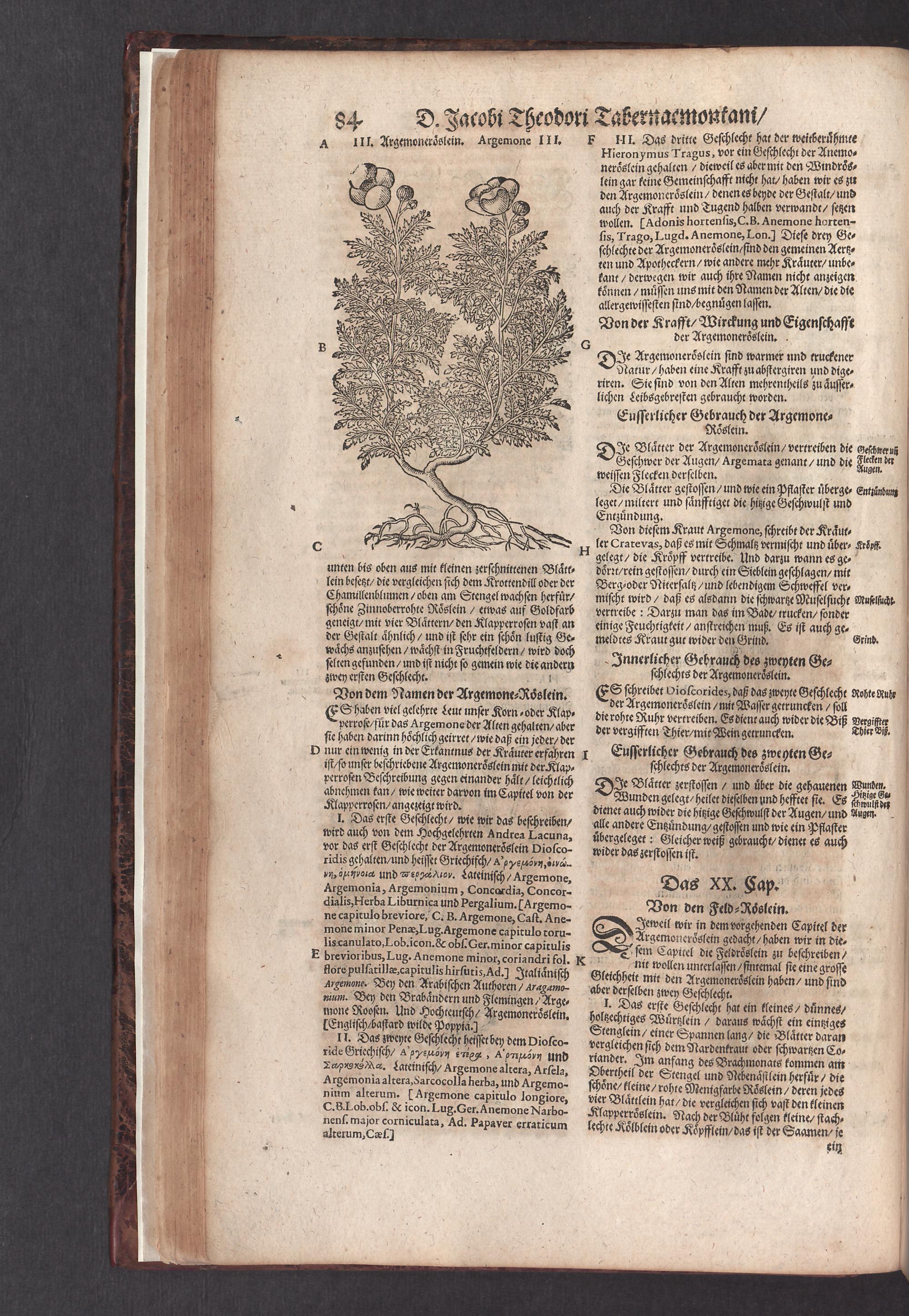 D. Jacobi Theodori Tabernaemontani, Neu vollkommen Kräuter-Buch : Darinnen Uber 3000. Kräuter/ mit schönen und kunstlichen Figuren/ auch deren Underscheid und Würckung/ samt ihren Namen in mancherley Sprachen/ beschrieben: Desgleichen auch/ wie dieselbige in allerhand Kranckheiten/ beyde der Menschen und des Viehs/ sollen angewendet und gebraucht werden/ angezeigt wird. Erstlichen durch Casparum Bauhinum D. und Profess. Basil. mit vielen neuen Figuren/ nutzlichen Artzneyen/ und anderem/ mit sonderem Fleis gebesseret/ Zum Andern Durch Hieronymum Bauhinum D. und Profess. Basil. mit sehr nutzlichen Marginalien, Synonimis, neuen Registeren und anderem vermehrt
