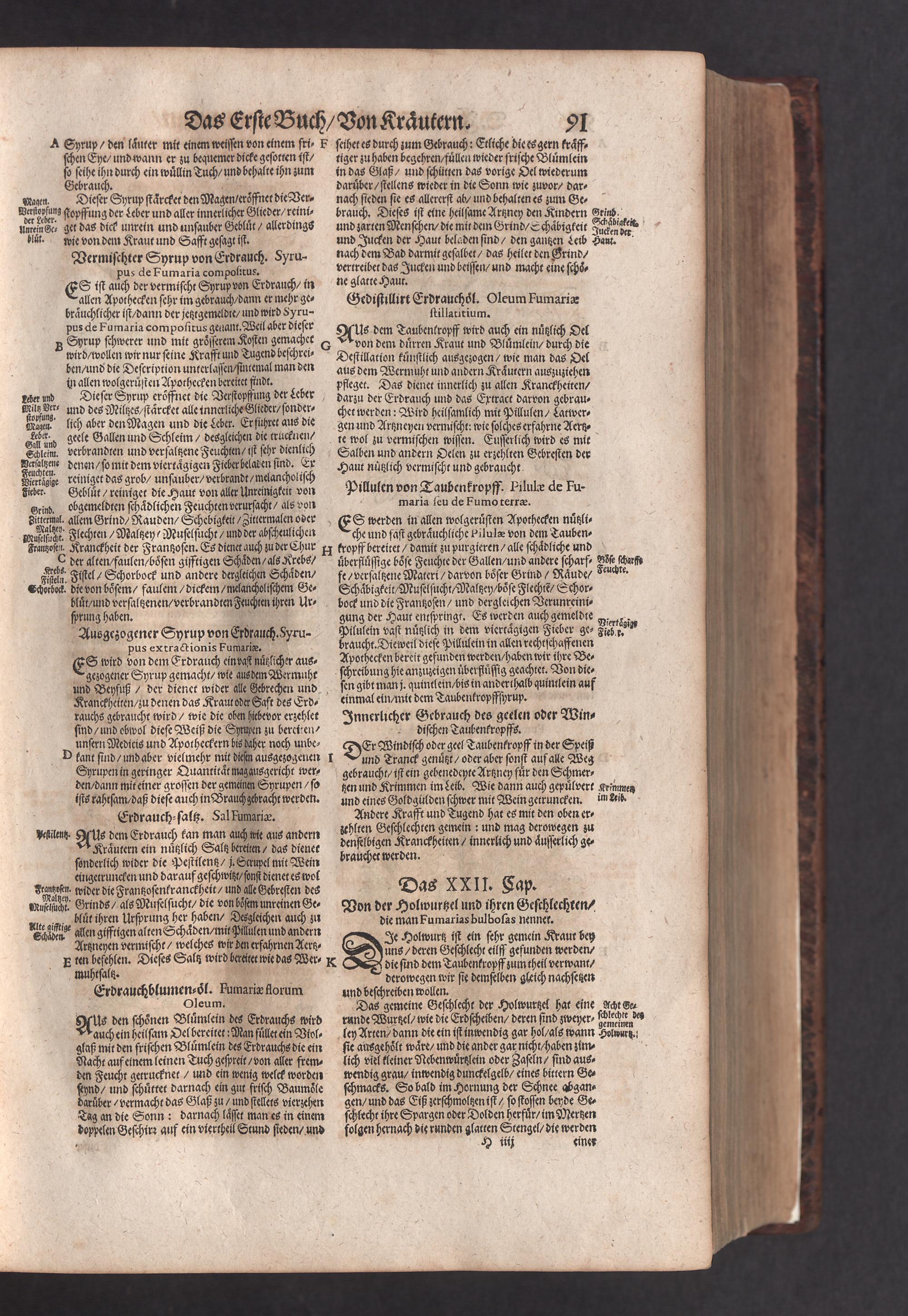 D. Jacobi Theodori Tabernaemontani, Neu vollkommen Kräuter-Buch : Darinnen Uber 3000. Kräuter/ mit schönen und kunstlichen Figuren/ auch deren Underscheid und Würckung/ samt ihren Namen in mancherley Sprachen/ beschrieben: Desgleichen auch/ wie dieselbige in allerhand Kranckheiten/ beyde der Menschen und des Viehs/ sollen angewendet und gebraucht werden/ angezeigt wird. Erstlichen durch Casparum Bauhinum D. und Profess. Basil. mit vielen neuen Figuren/ nutzlichen Artzneyen/ und anderem/ mit sonderem Fleis gebesseret/ Zum Andern Durch Hieronymum Bauhinum D. und Profess. Basil. mit sehr nutzlichen Marginalien, Synonimis, neuen Registeren und anderem vermehrt