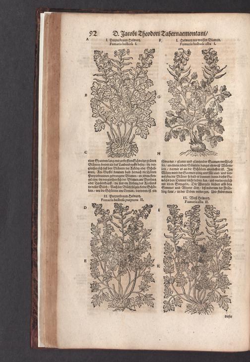 D. Jacobi Theodori Tabernaemontani, Neu vollkommen Kräuter-Buch : Darinnen Uber 3000. Kräuter/ mit schönen und kunstlichen Figuren/ auch deren Underscheid und Würckung/ samt ihren Namen in mancherley Sprachen/ beschrieben: Desgleichen auch/ wie dieselbige in allerhand Kranckheiten/ beyde der Menschen und des Viehs/ sollen angewendet und gebraucht werden/ angezeigt wird. Erstlichen durch Casparum Bauhinum D. und Profess. Basil. mit vielen neuen Figuren/ nutzlichen Artzneyen/ und anderem/ mit sonderem Fleis gebesseret/ Zum Andern Durch Hieronymum Bauhinum D. und Profess. Basil. mit sehr nutzlichen Marginalien, Synonimis, neuen Registeren und anderem vermehrt