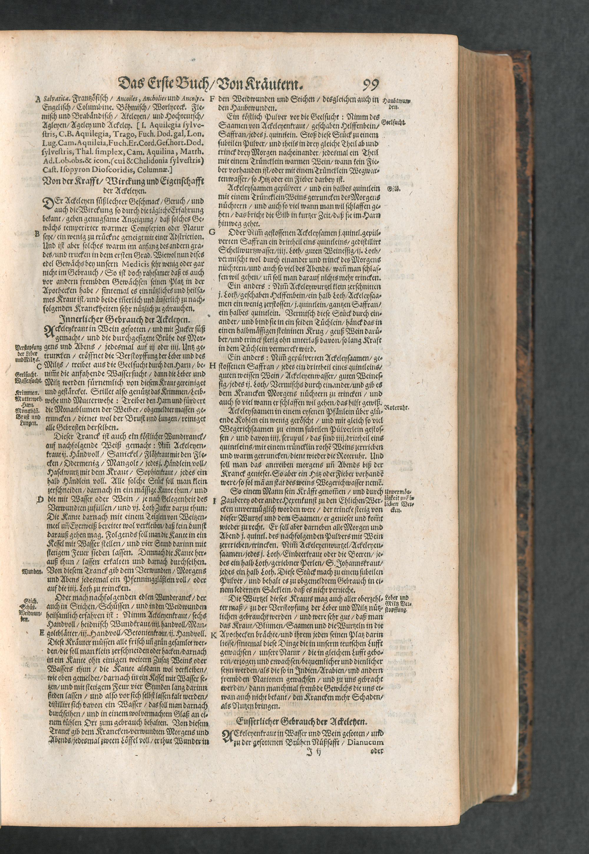D. Jacobi Theodori Tabernaemontani, Neu vollkommen Kräuter-Buch : Darinnen Uber 3000. Kräuter/ mit schönen und kunstlichen Figuren/ auch deren Underscheid und Würckung/ samt ihren Namen in mancherley Sprachen/ beschrieben: Desgleichen auch/ wie dieselbige in allerhand Kranckheiten/ beyde der Menschen und des Viehs/ sollen angewendet und gebraucht werden/ angezeigt wird. Erstlichen durch Casparum Bauhinum D. und Profess. Basil. mit vielen neuen Figuren/ nutzlichen Artzneyen/ und anderem/ mit sonderem Fleis gebesseret/ Zum Andern Durch Hieronymum Bauhinum D. und Profess. Basil. mit sehr nutzlichen Marginalien, Synonimis, neuen Registeren und anderem vermehrt