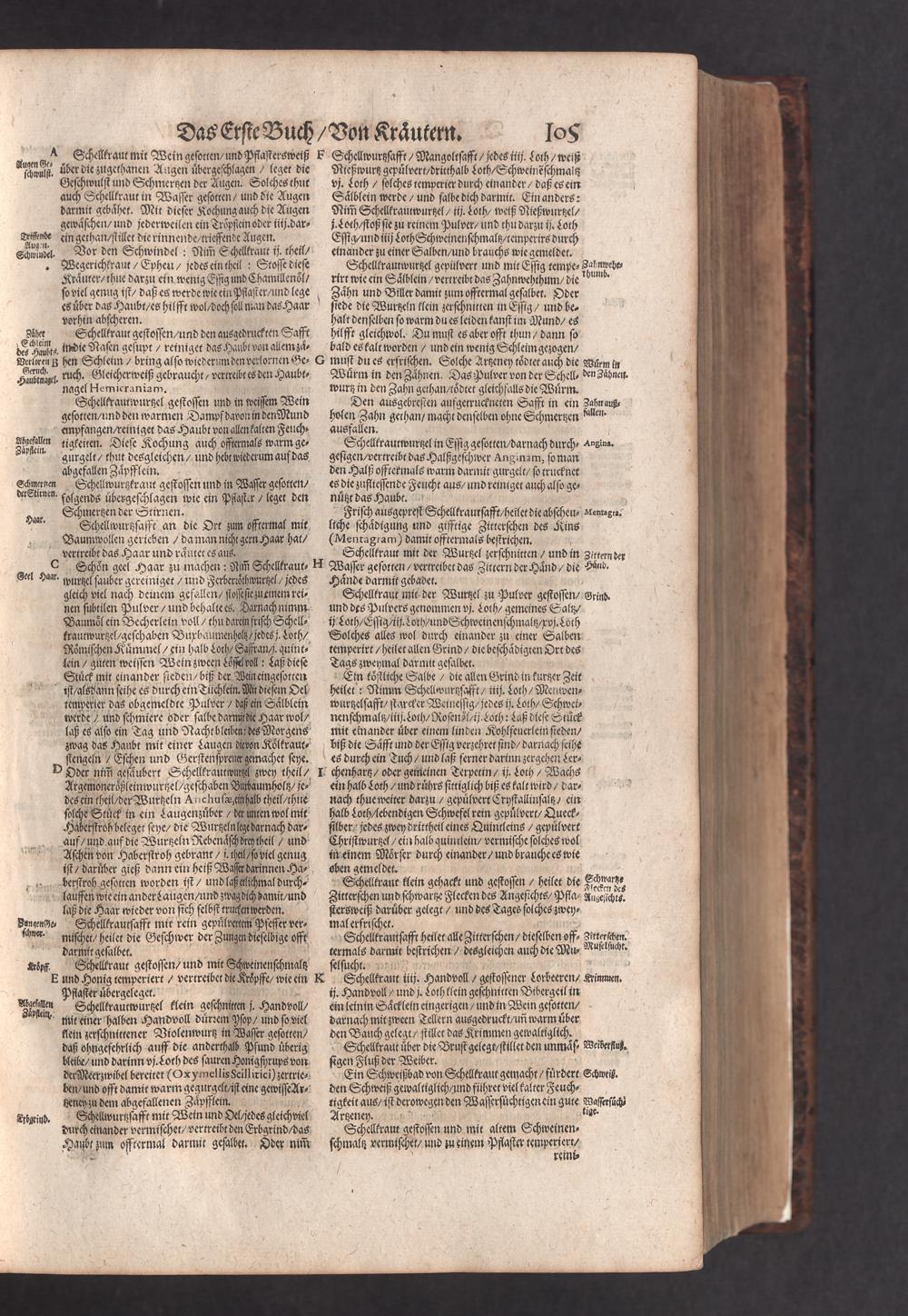 D. Jacobi Theodori Tabernaemontani, Neu vollkommen Kräuter-Buch : Darinnen Uber 3000. Kräuter/ mit schönen und kunstlichen Figuren/ auch deren Underscheid und Würckung/ samt ihren Namen in mancherley Sprachen/ beschrieben: Desgleichen auch/ wie dieselbige in allerhand Kranckheiten/ beyde der Menschen und des Viehs/ sollen angewendet und gebraucht werden/ angezeigt wird. Erstlichen durch Casparum Bauhinum D. und Profess. Basil. mit vielen neuen Figuren/ nutzlichen Artzneyen/ und anderem/ mit sonderem Fleis gebesseret/ Zum Andern Durch Hieronymum Bauhinum D. und Profess. Basil. mit sehr nutzlichen Marginalien, Synonimis, neuen Registeren und anderem vermehrt