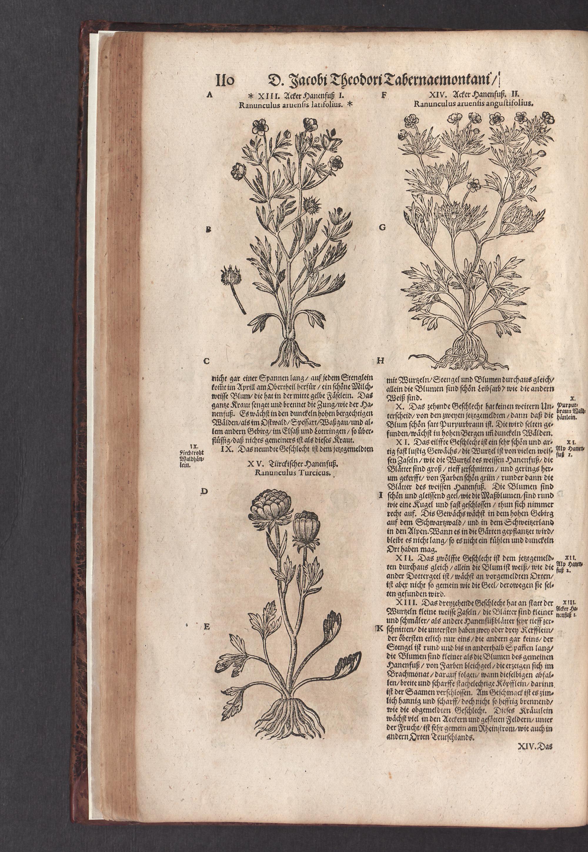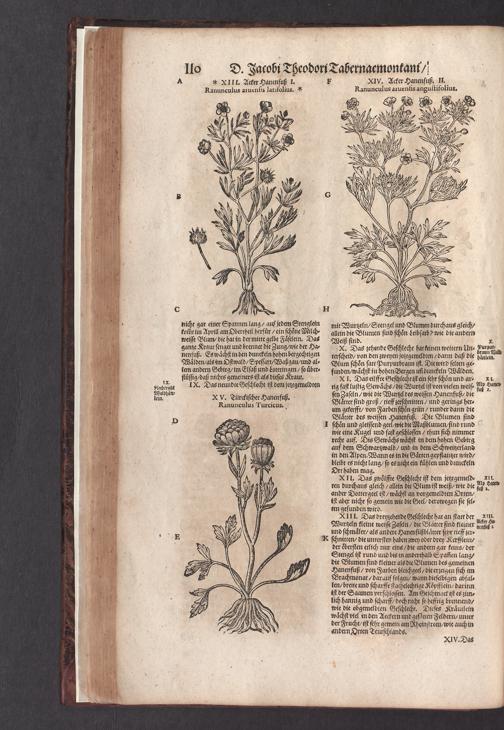 D. Jacobi Theodori Tabernaemontani, Neu vollkommen Kräuter-Buch : Darinnen Uber 3000. Kräuter/ mit schönen und kunstlichen Figuren/ auch deren Underscheid und Würckung/ samt ihren Namen in mancherley Sprachen/ beschrieben: Desgleichen auch/ wie dieselbige in allerhand Kranckheiten/ beyde der Menschen und des Viehs/ sollen angewendet und gebraucht werden/ angezeigt wird. Erstlichen durch Casparum Bauhinum D. und Profess. Basil. mit vielen neuen Figuren/ nutzlichen Artzneyen/ und anderem/ mit sonderem Fleis gebesseret/ Zum Andern Durch Hieronymum Bauhinum D. und Profess. Basil. mit sehr nutzlichen Marginalien, Synonimis, neuen Registeren und anderem vermehrt