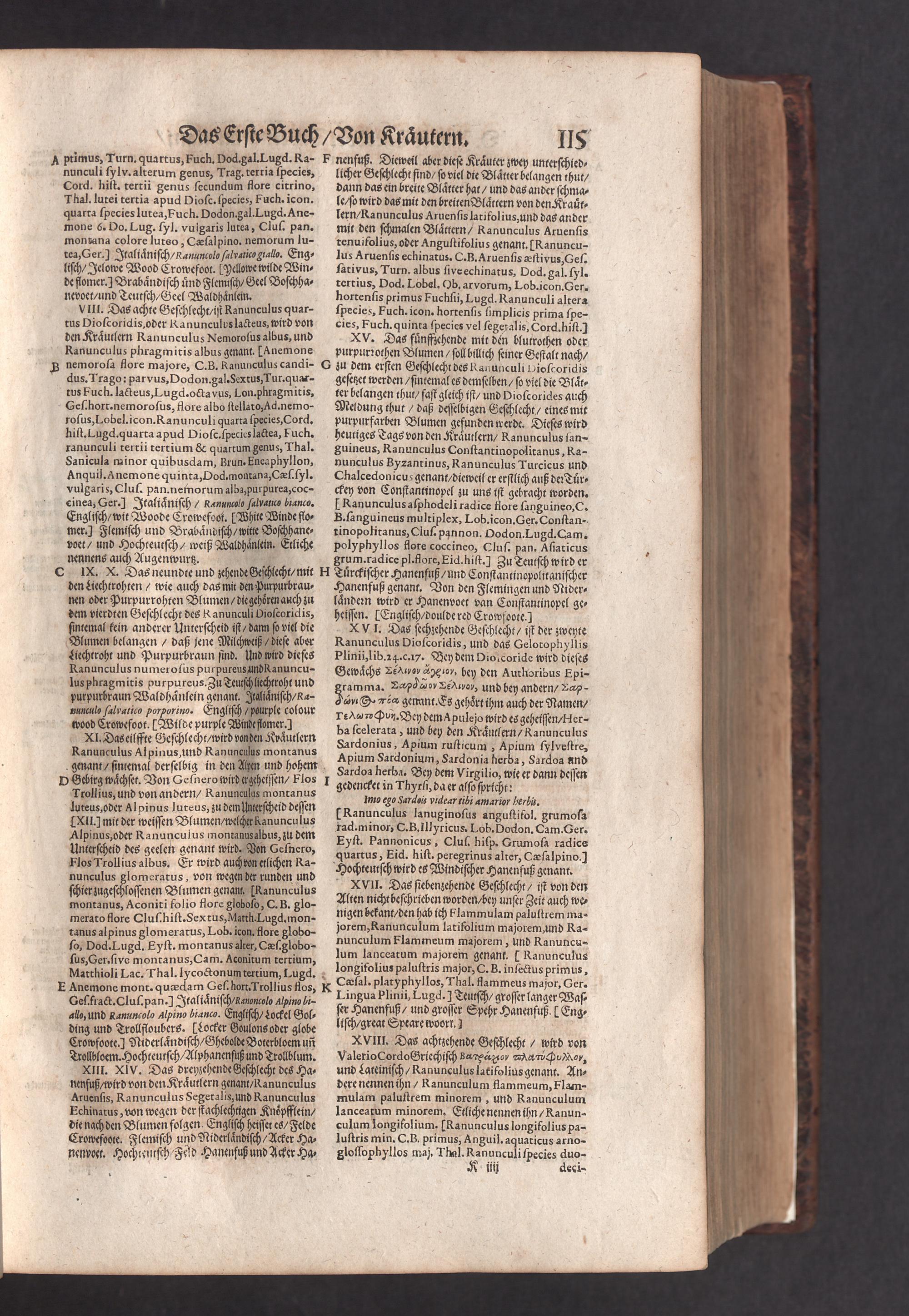 D. Jacobi Theodori Tabernaemontani, Neu vollkommen Kräuter-Buch : Darinnen Uber 3000. Kräuter/ mit schönen und kunstlichen Figuren/ auch deren Underscheid und Würckung/ samt ihren Namen in mancherley Sprachen/ beschrieben: Desgleichen auch/ wie dieselbige in allerhand Kranckheiten/ beyde der Menschen und des Viehs/ sollen angewendet und gebraucht werden/ angezeigt wird. Erstlichen durch Casparum Bauhinum D. und Profess. Basil. mit vielen neuen Figuren/ nutzlichen Artzneyen/ und anderem/ mit sonderem Fleis gebesseret/ Zum Andern Durch Hieronymum Bauhinum D. und Profess. Basil. mit sehr nutzlichen Marginalien, Synonimis, neuen Registeren und anderem vermehrt