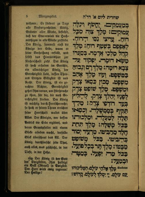 תפלה בעד שלום המלך וממלכה 'ר"ה