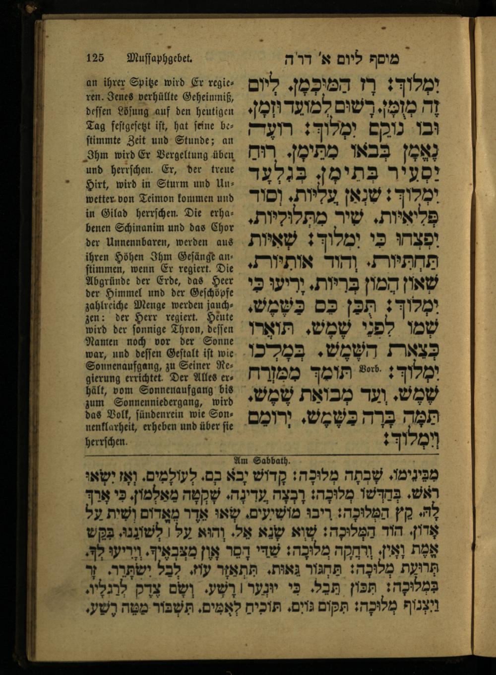 תפלה בעד שלום המלך וממלכה 'ר"ה