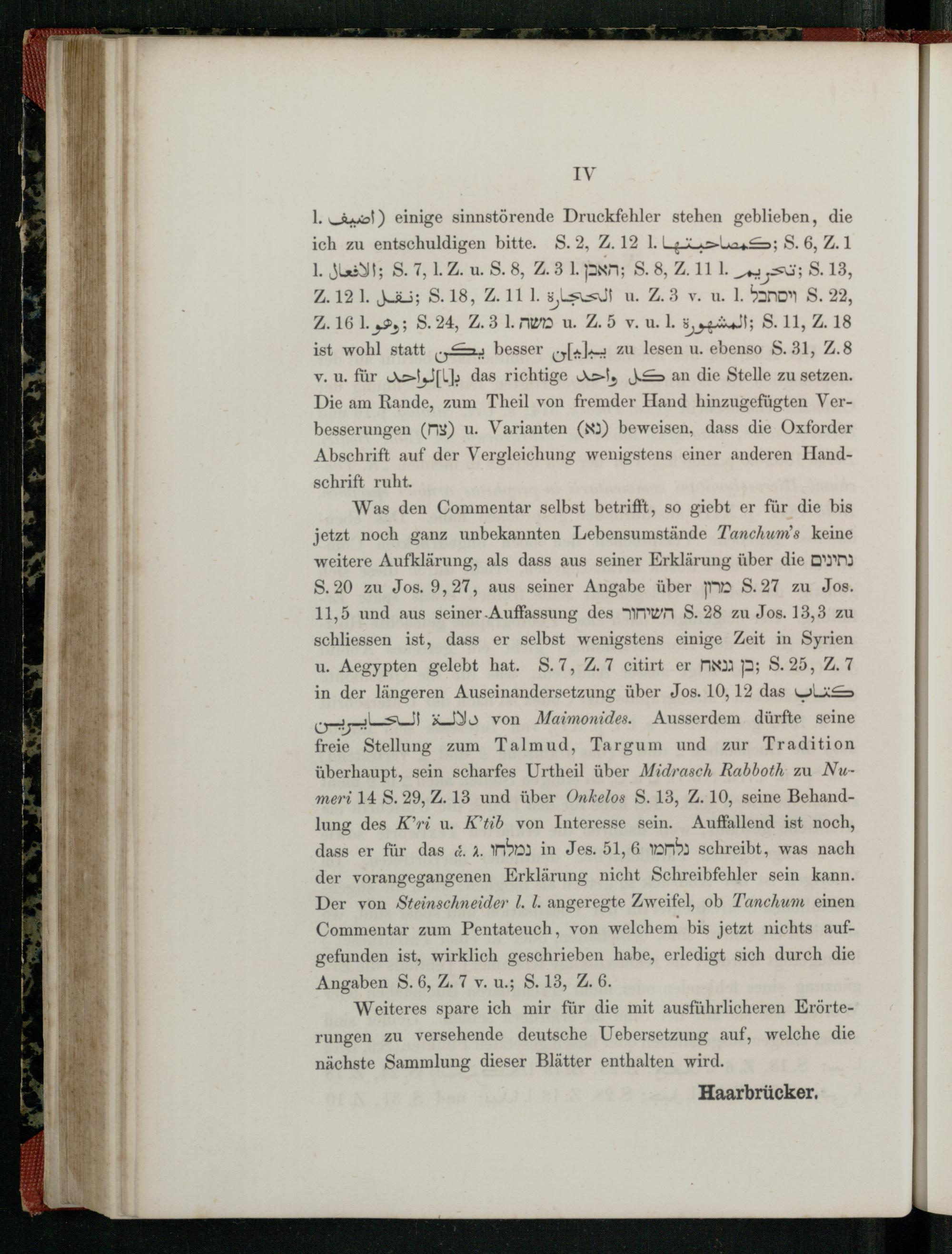 Rabbi Tanchum Jeruschalmi arabischer Commentar zum Buche Josua / zum ersten Male herausgegeben von Th. Haarbrücker