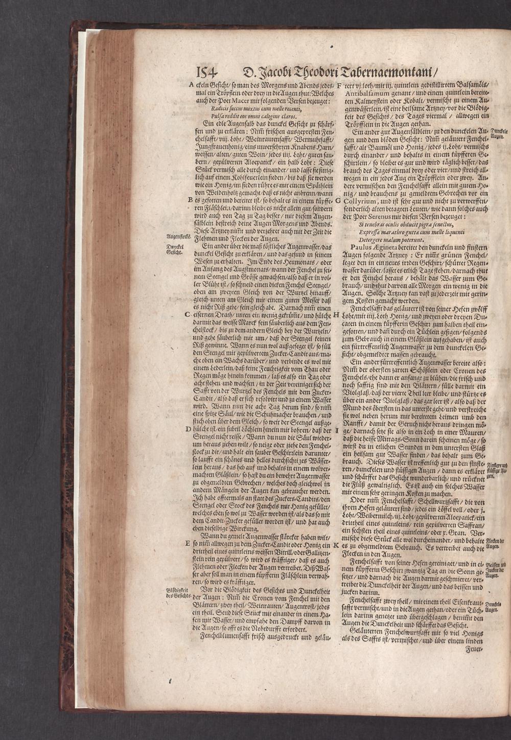 D. Jacobi Theodori Tabernaemontani, Neu vollkommen Kräuter-Buch : Darinnen Uber 3000. Kräuter/ mit schönen und kunstlichen Figuren/ auch deren Underscheid und Würckung/ samt ihren Namen in mancherley Sprachen/ beschrieben: Desgleichen auch/ wie dieselbige in allerhand Kranckheiten/ beyde der Menschen und des Viehs/ sollen angewendet und gebraucht werden/ angezeigt wird. Erstlichen durch Casparum Bauhinum D. und Profess. Basil. mit vielen neuen Figuren/ nutzlichen Artzneyen/ und anderem/ mit sonderem Fleis gebesseret/ Zum Andern Durch Hieronymum Bauhinum D. und Profess. Basil. mit sehr nutzlichen Marginalien, Synonimis, neuen Registeren und anderem vermehrt