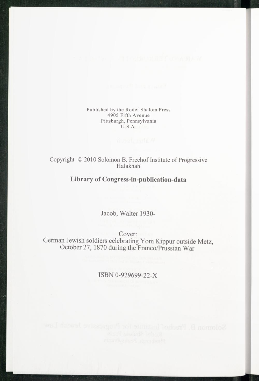 War and terrorism in Jewish law : essays and responsa / edited by Walter Jacob