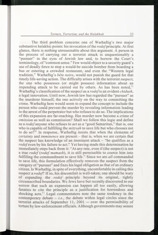 TORTURE, TERRORISM, AND THE HALAKHAH