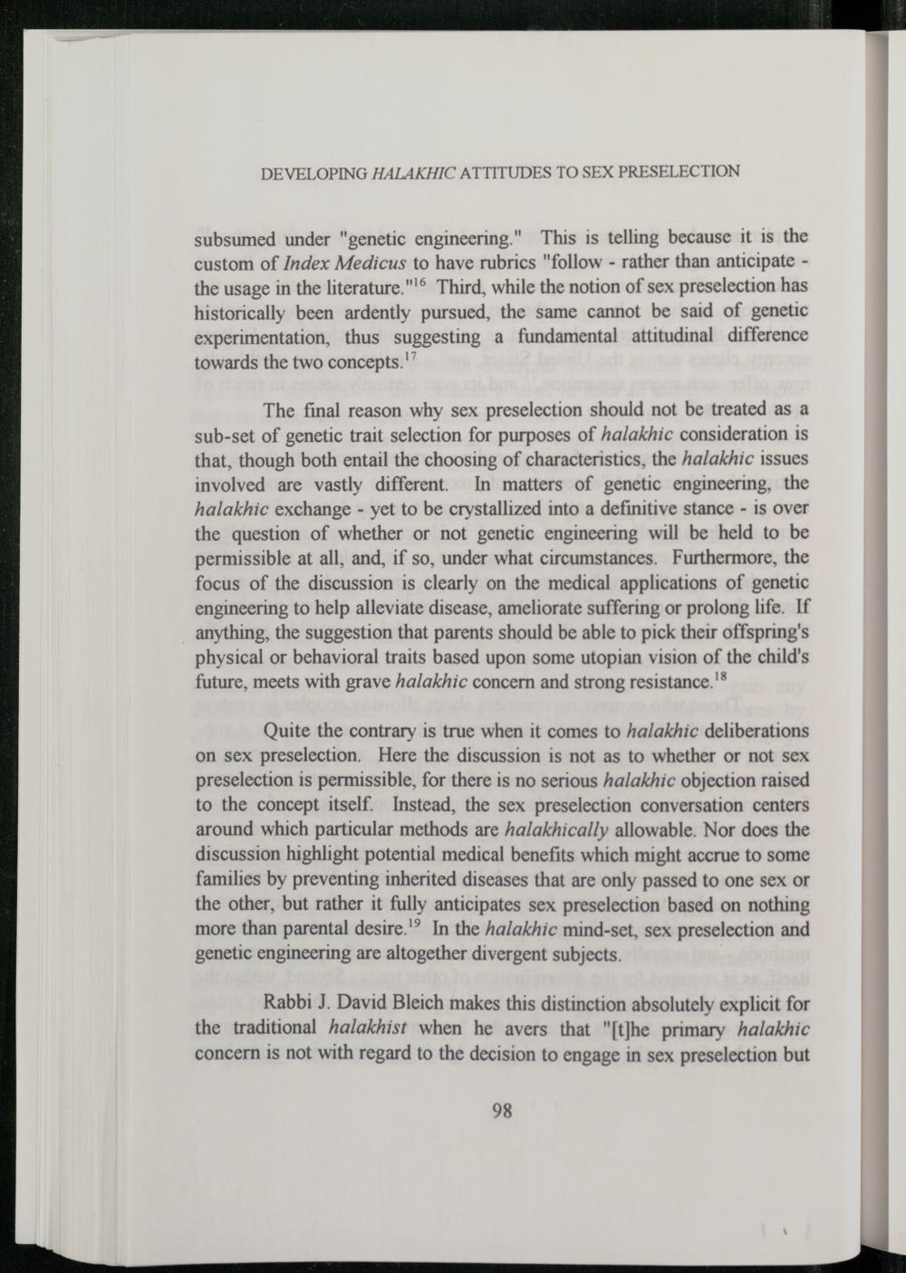 DEVELOPING HALAKHIC ATITUDES TO SEX PRESELECTION