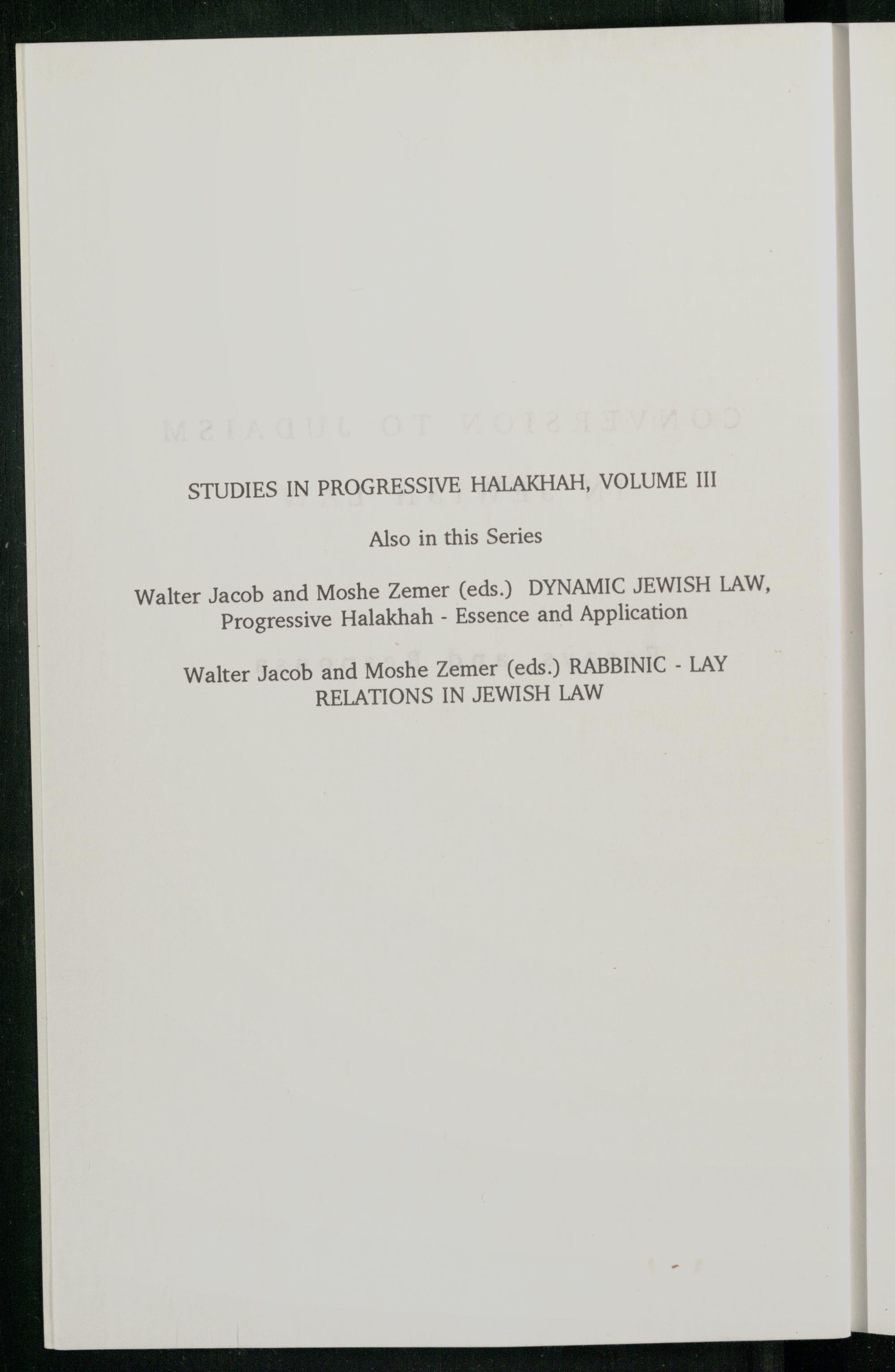 Conversion to Judaism in Jewish law : essays and responsa / edited by Walter Jacob and Moshe Zemer