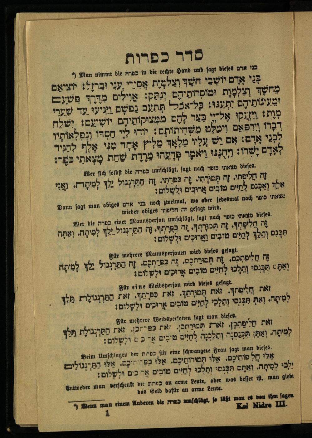 3. Theil (1906) Für den Vorabend des Versöhnungstages