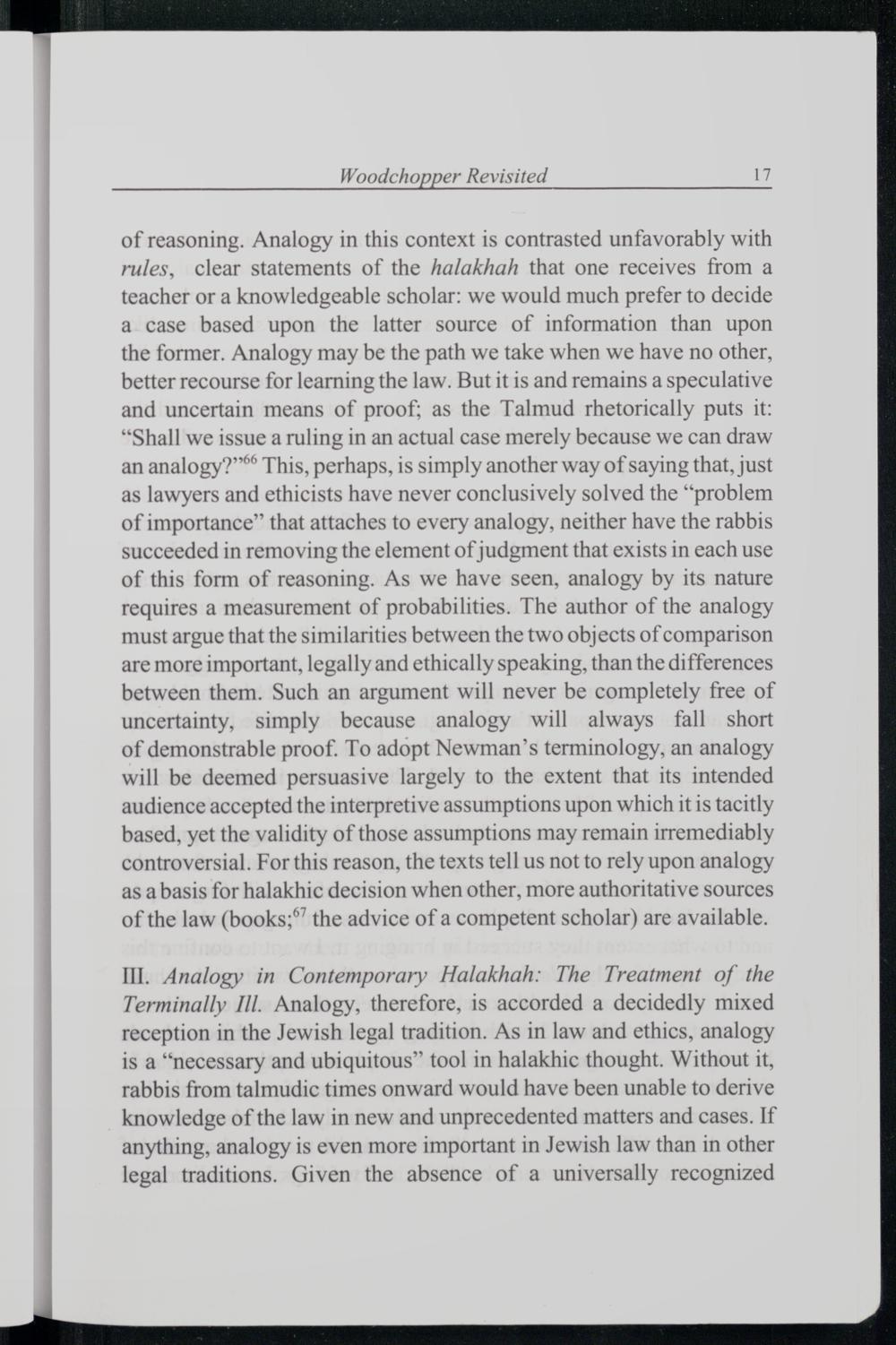 THE WOODCHOPPER REVISITED ON ANALOGY, HALAKHAH, AND JEWISH BIOETHICS