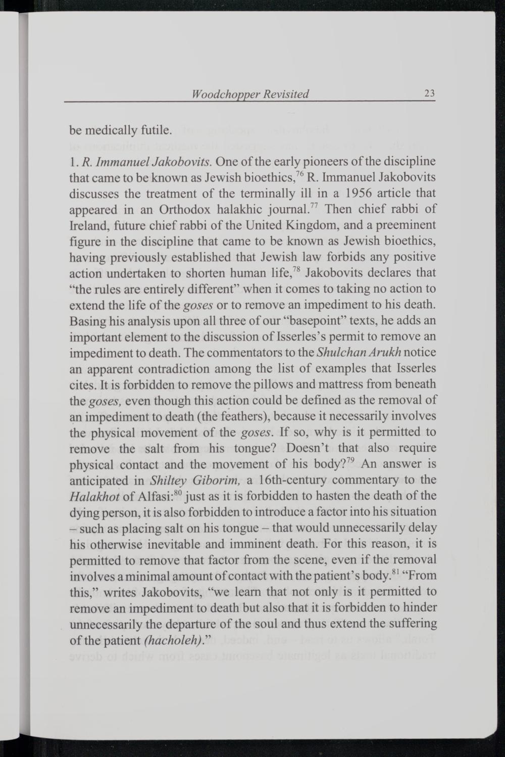 THE WOODCHOPPER REVISITED ON ANALOGY, HALAKHAH, AND JEWISH BIOETHICS