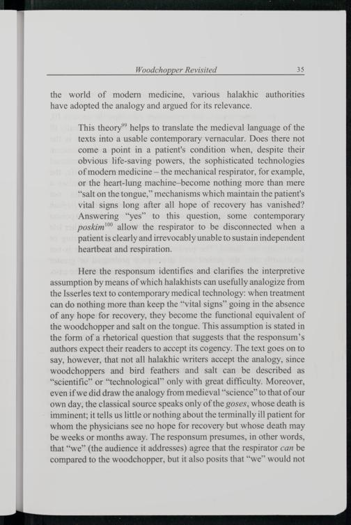 THE WOODCHOPPER REVISITED ON ANALOGY, HALAKHAH, AND JEWISH BIOETHICS